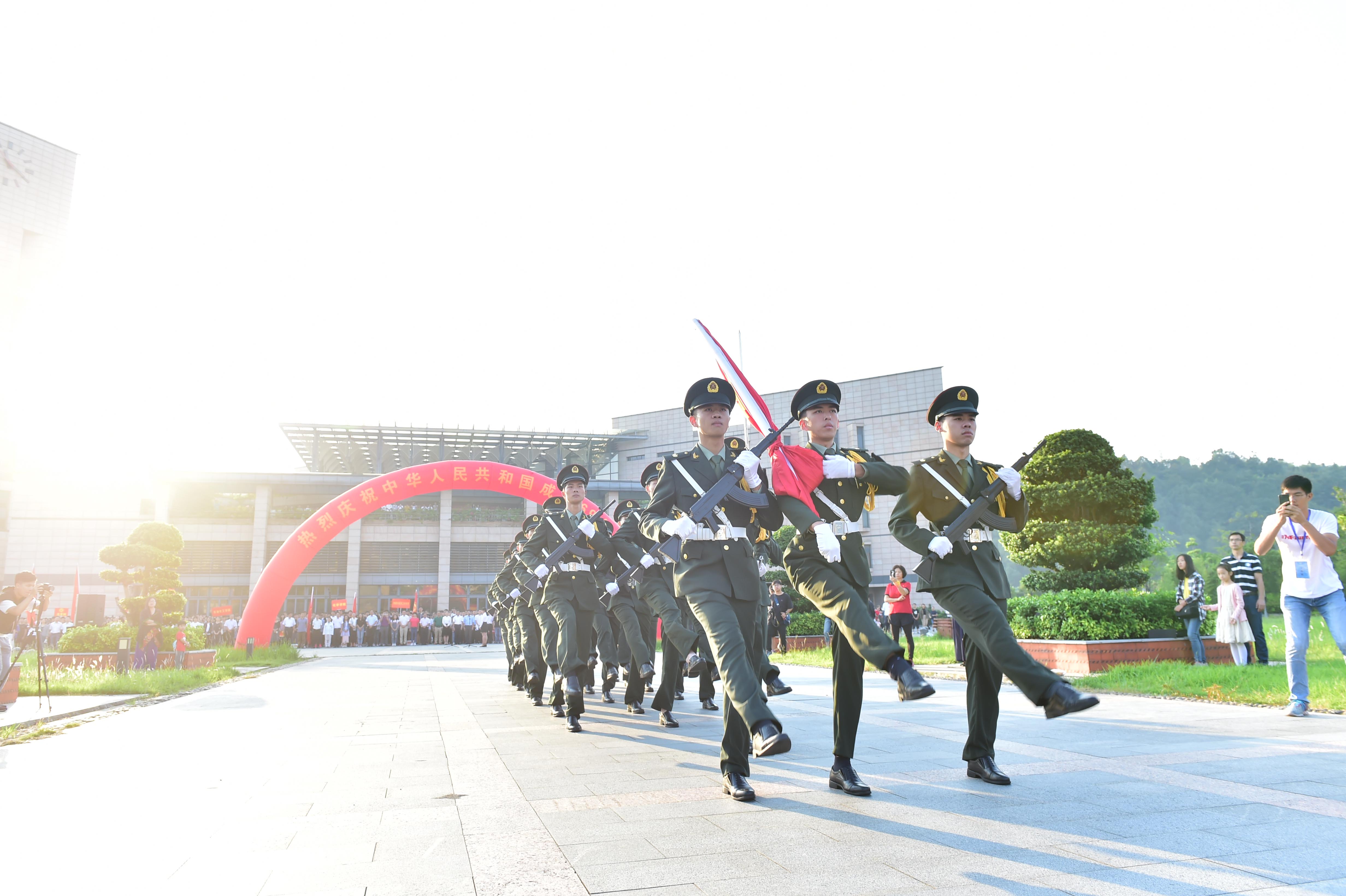 新闻中心讯/10月1日早上,福州大学在旗山校区图书馆前福万广场隆重举行升国旗仪式,庆祝新中国成立69周年。校党委副书记林生、全体学生政工干部以及学生代表共计近5000人参加了升旗仪式。