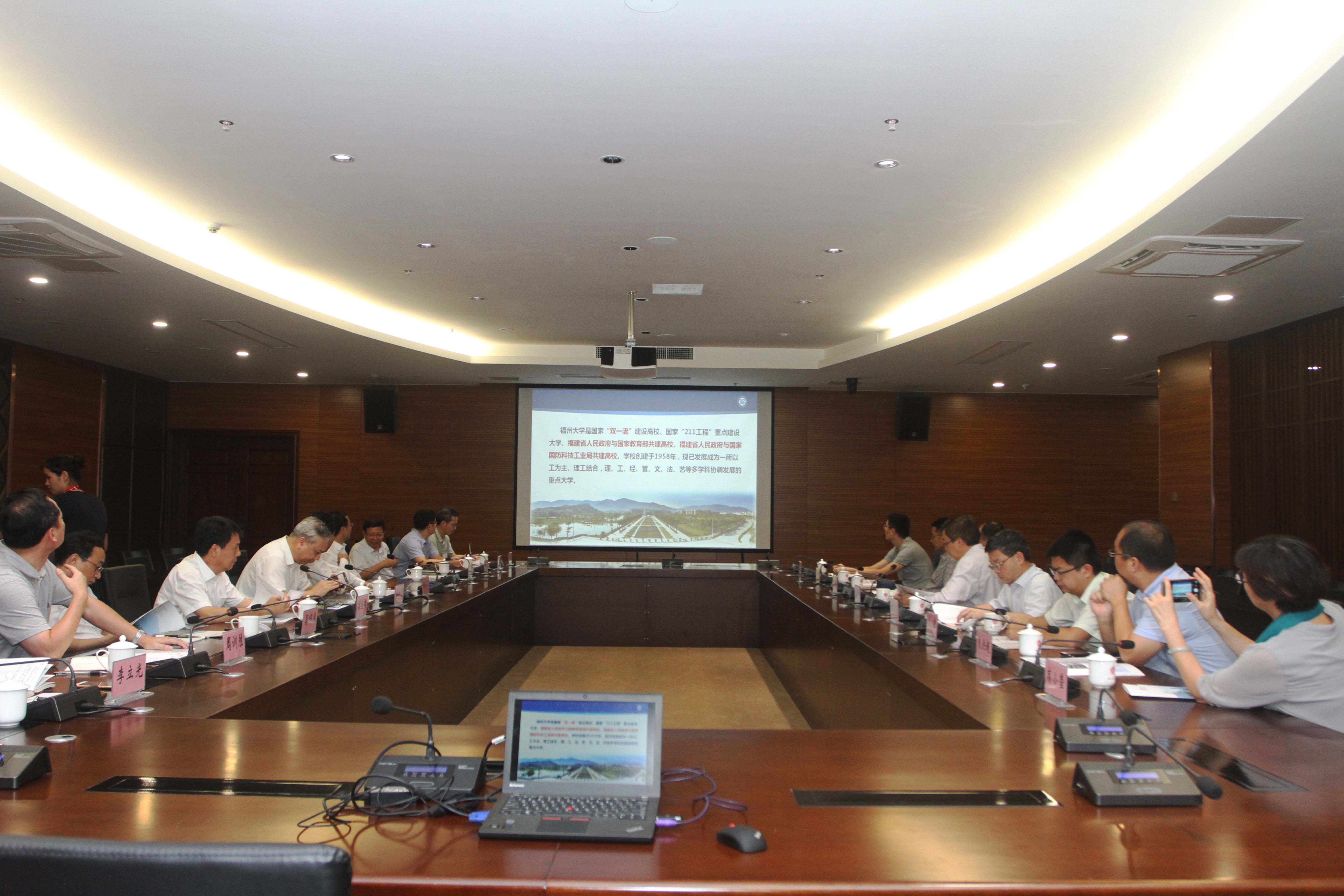 新闻中心讯/8月27日下午,中国科技大学党委书记舒歌群一行来福州大学调研。福建省委教育工委书记、省教育厅党组书记、厅长林和平,福建省科技厅副厅长林伯德,福建省教育厅发展规划处处处长吴吓凤,福州大学党委书记陈永正出席调研座谈会。