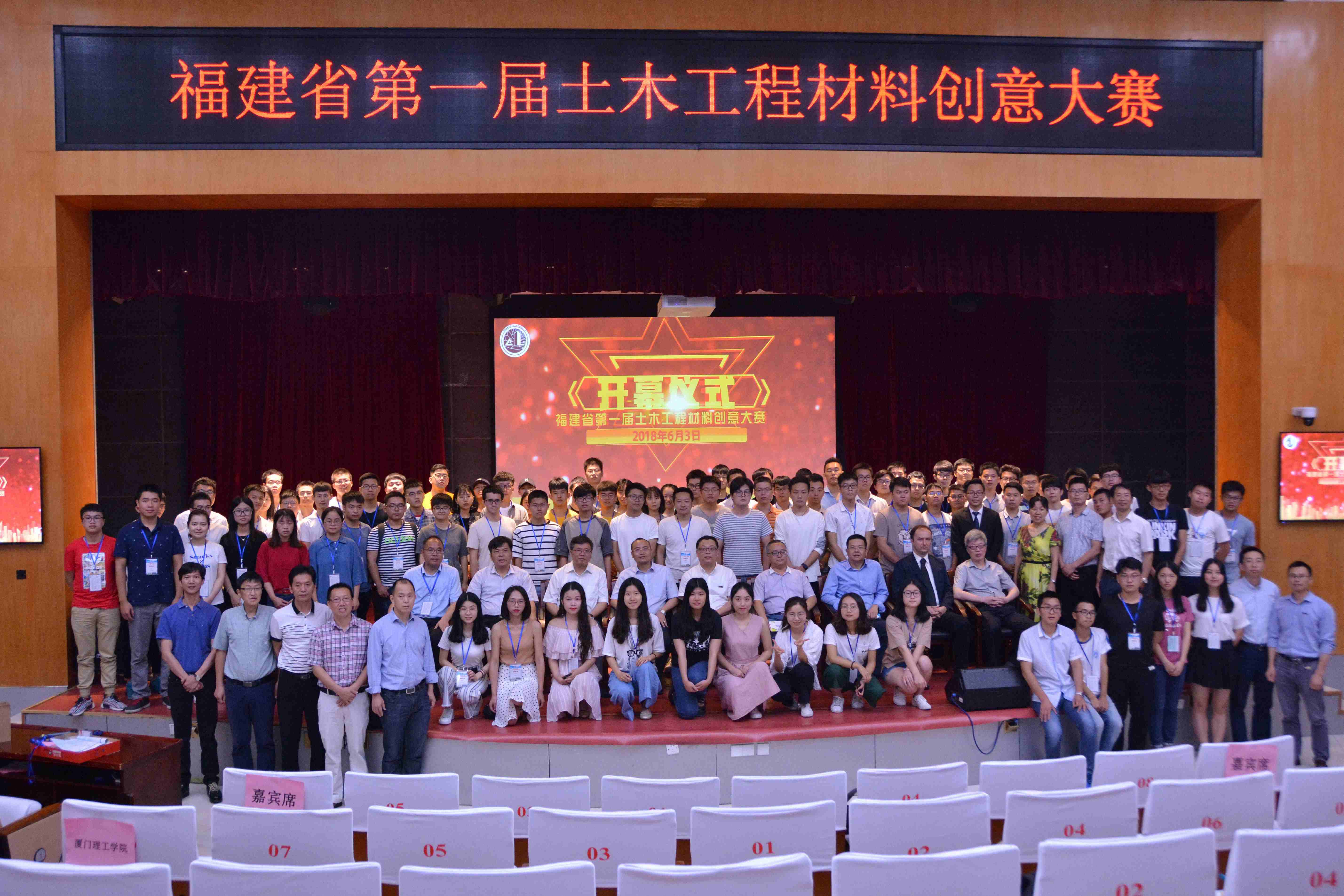 新闻中心讯/6月2日至3日,福建省第一届土木工程材料创意大赛在福州大学图书馆明德厅举办。出席此次大赛的嘉宾有福州大学副校长杨黄浩教授、福建省土木建筑学会严捍东教授、福建工程学院副校长韦建刚教授、鸿生集团有限公司总工何叶贵及研究生院、土木工程学院相关负责人等,大赛荣誉主席陈宝春教授作为特邀嘉宾出席。