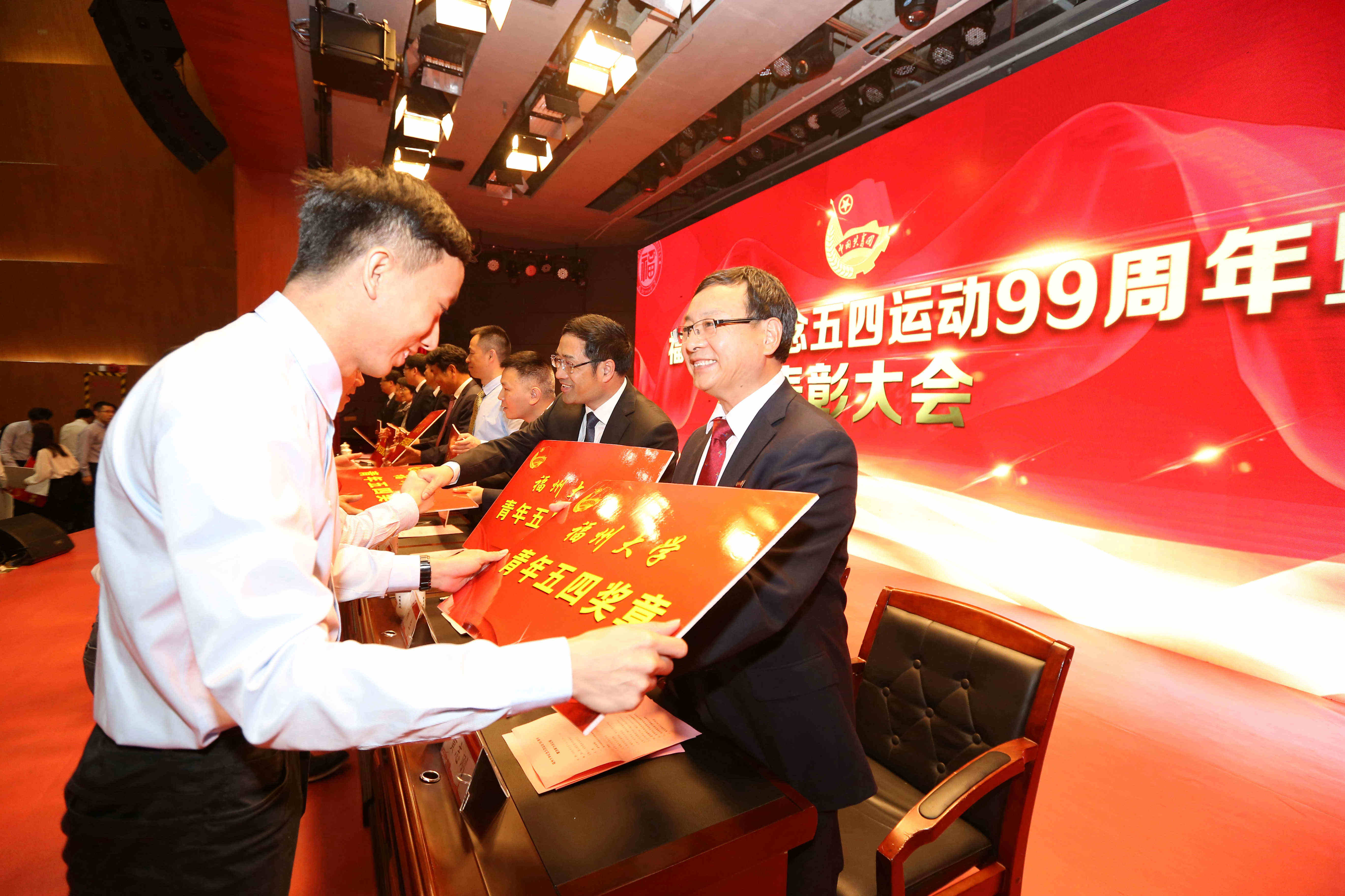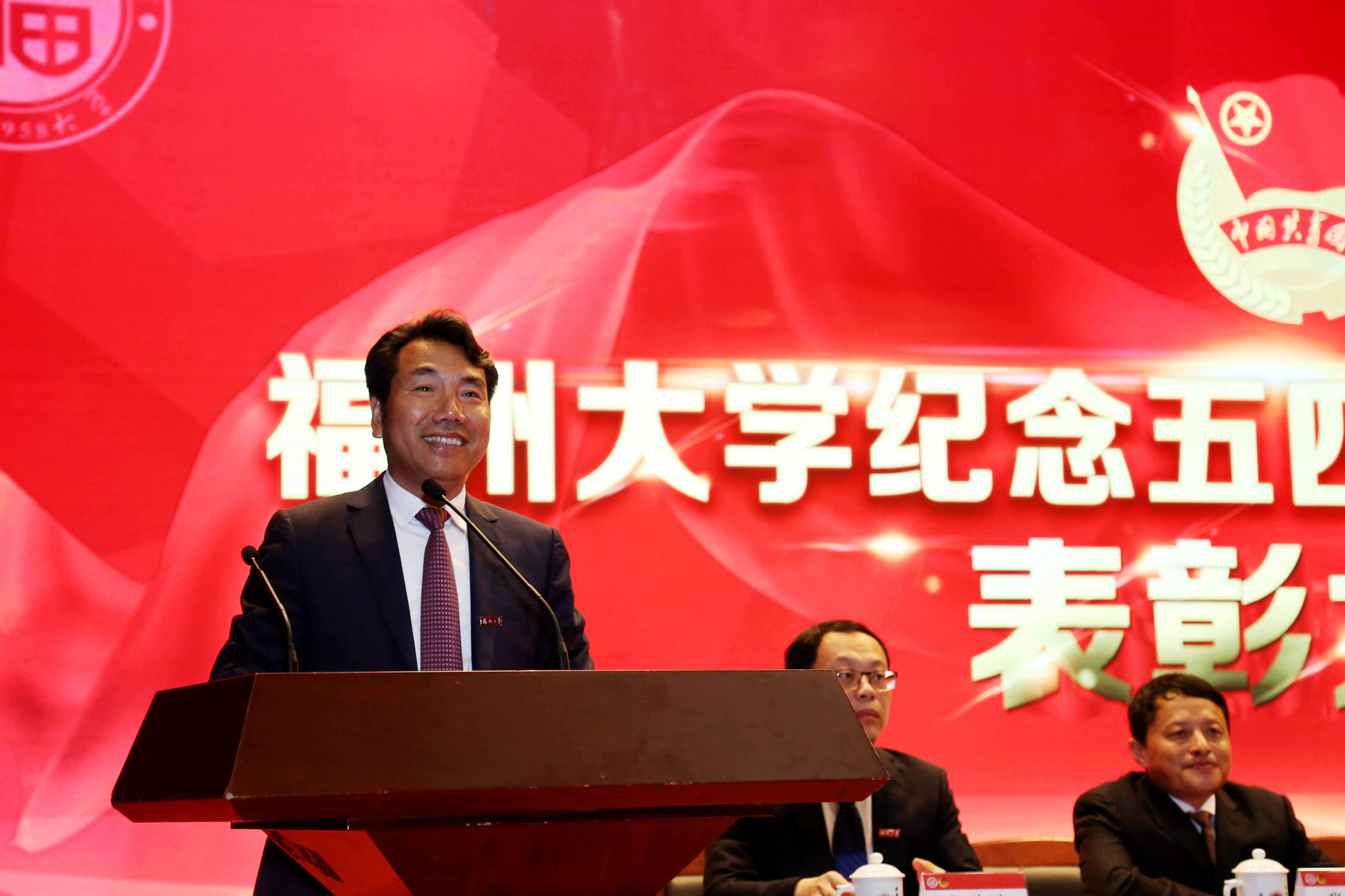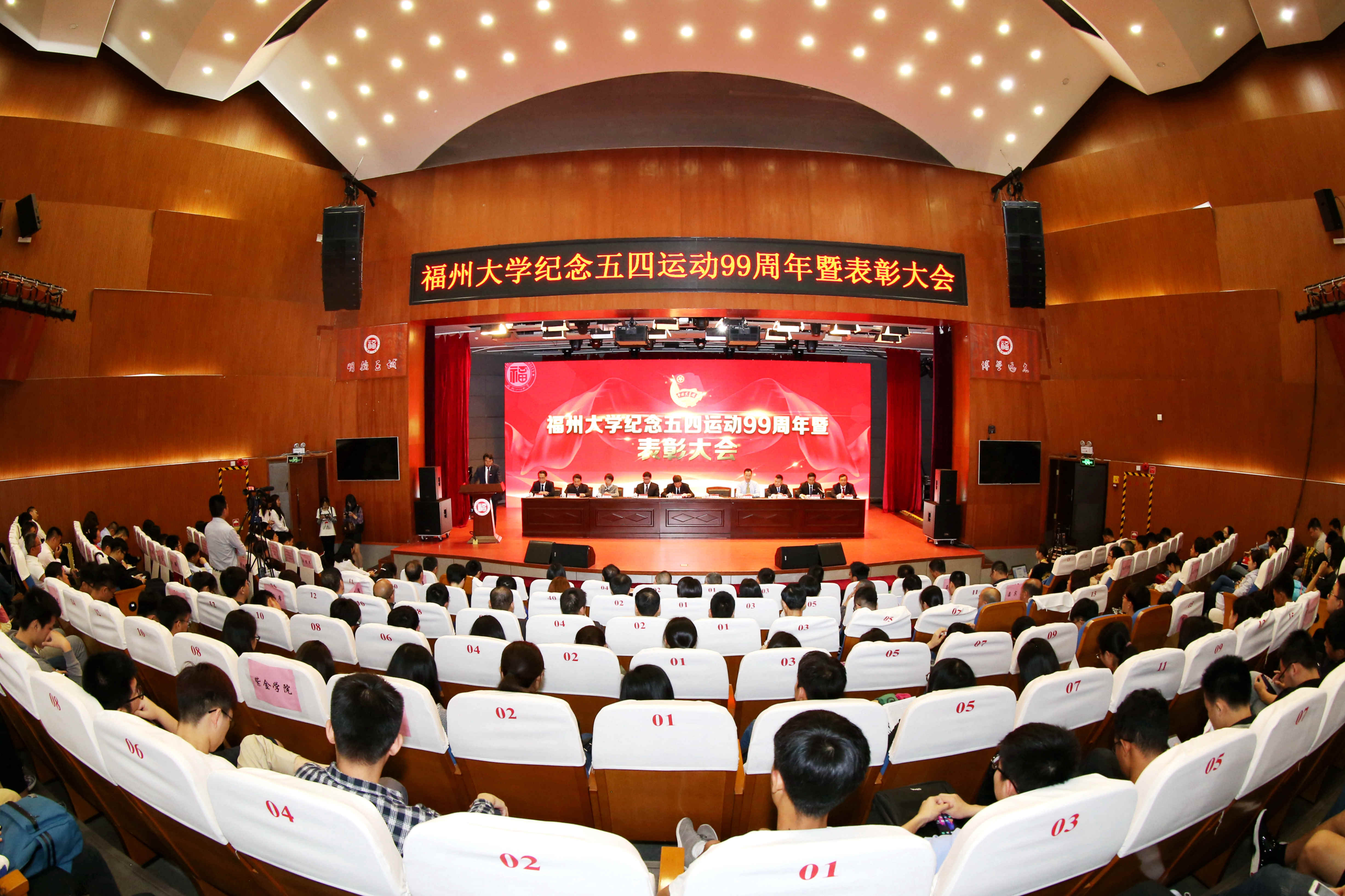新闻中心讯/5月3日上午,福州大学纪念 五四运动99周年暨表彰大会在图书馆博学厅举行。校领导陈永正、付贤智、林生、张星、黄志刚、杨黄浩,阳光控股集团总裁吕建波,厦门航空有限公司党委委员、副总经理兼厦航福州分公司总经理倪良胜,福建金科集团副总经理何志清,美国孙氏教育基金会代表孙小玲,学校相关部处负责人以及各学院师生代表共500多人参加了表彰大会。会议由林生副书记主持。