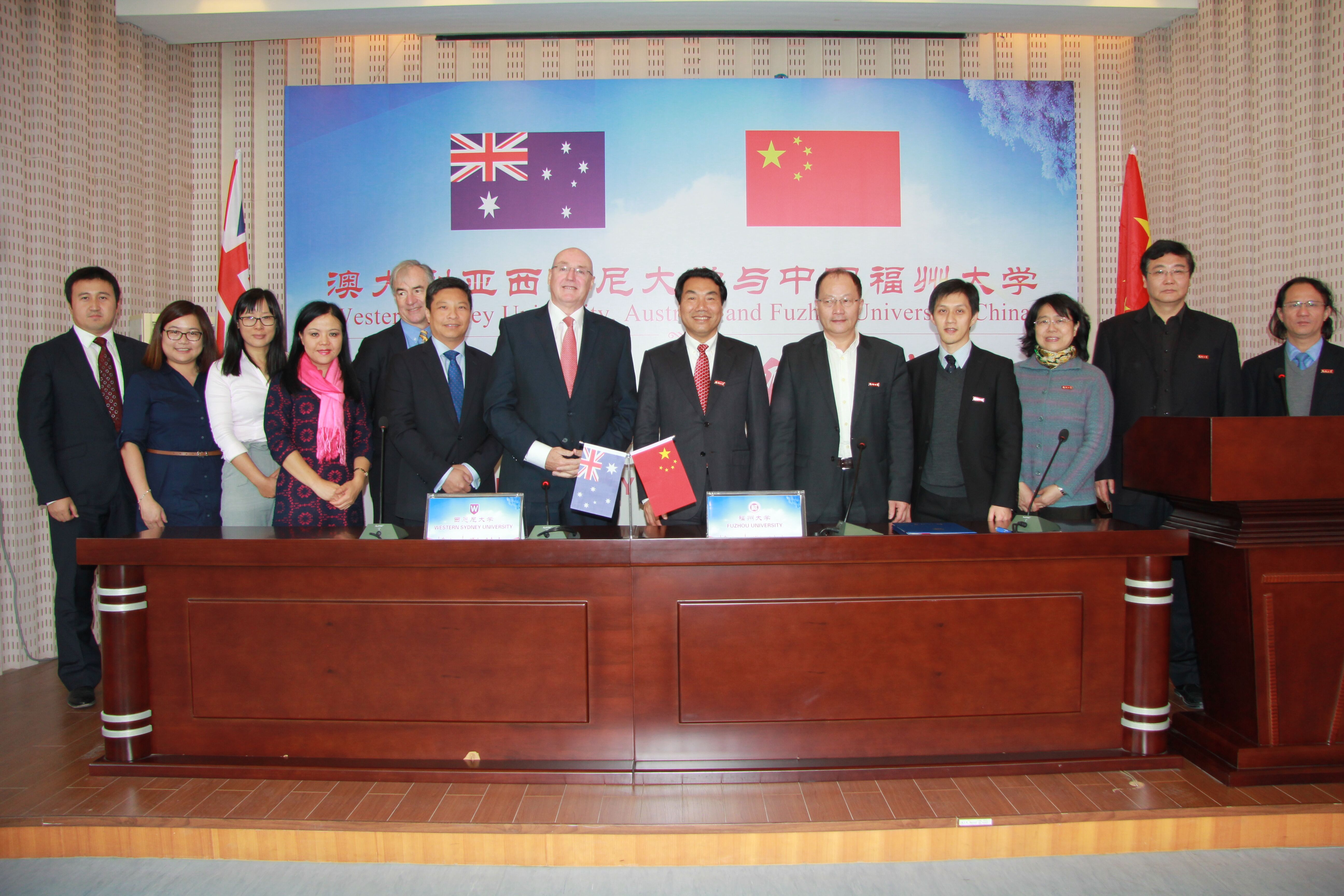 在陈永正书记和西悉尼大学蓝易振副校长的共同见证下,西悉尼大学校长葛班尼教授(Prof. Barney Glover)、福州大学副校长王健分别代表双方签署了两校在经管、外语领域的项目合作协议。