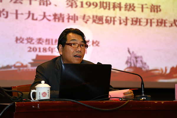 陈永正书记在动员报告中指出,深入学习贯彻党的十九大精神,是当前和今后一个时期首要的政治任务,是学校各级党组织和广大党员干部的头等大事,希望各位学员从三个方面抓好学习:一要“读原著、学原文、悟原理”,实现精神实质准确领会;二要“认真学、带头学、深入学”,实现以上率下全员学习;三要“用起来、动起来、做起来”,实现学习成果落到实处。