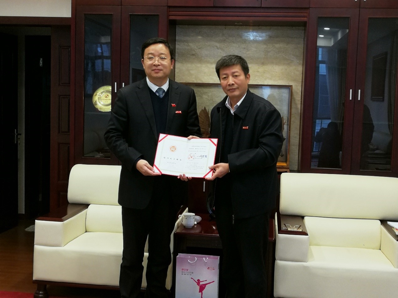 付贤智校长向张贵民董事长颁发福州大学“客座教授”聘书