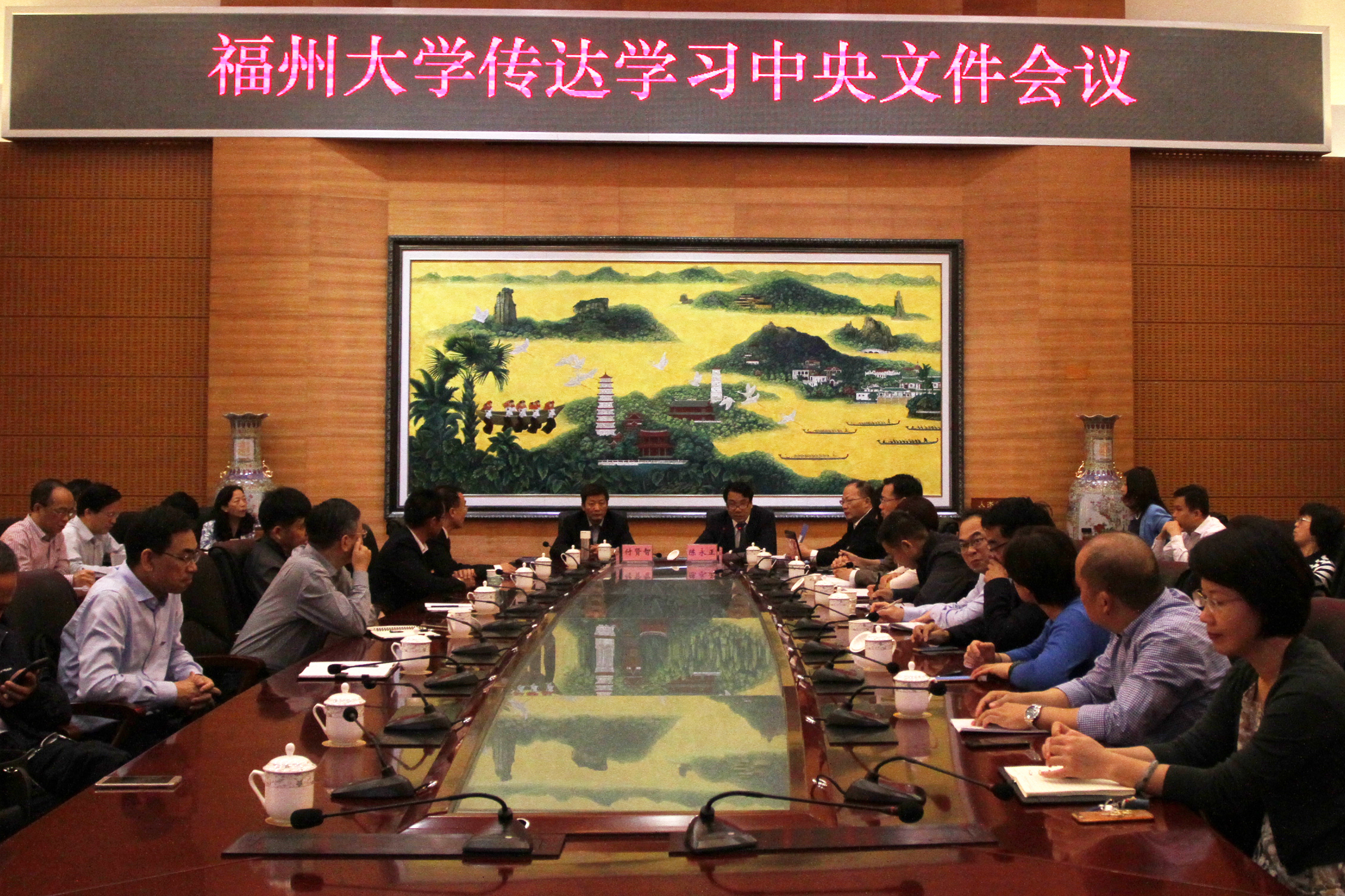 新闻中心讯/11月15日上午,福州大学在行政南楼123召开传达学习中央有关文件精神暨保密教育工作会议,校领导陈永正、付贤智、杨黄浩、王健及各二级党委、各学院党政、机关各部处、各单位主要负责人参加了会议,会议由校党委书记陈永正主持。