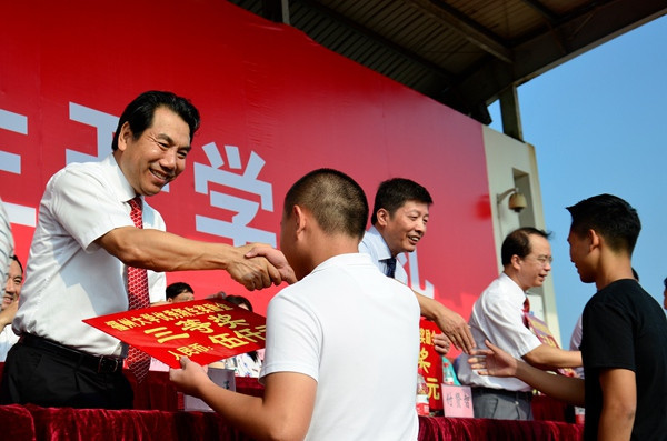 陈永正书记等校领导为新生颁奖励金 学生记者 万梦岳 摄