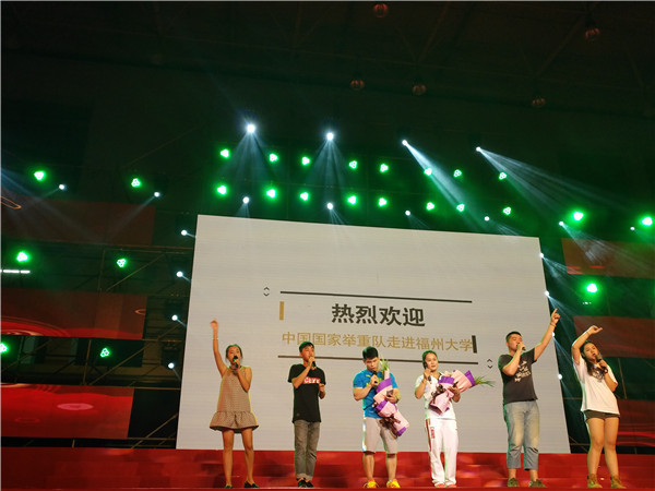 此外,本次晚会还邀请了林清峰、邓薇等奥运冠军来到现场,与福大学子近距离接触。通过主持人的采访、游戏环节的互动和精彩的歌曲合唱,奥运冠军们分享了夺冠路上的酸甜苦辣,并向在场同学们展现了活泼可爱的一面。