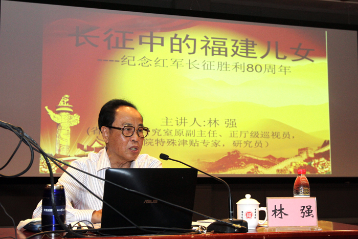 林强教授学识渊博、旁征博引。报告中,他围绕长征的三个阶段——“悲壮的战略转移”“艰难的生死之行”“伟大的第二战场”,通过一个个详实的历史史料,生动讲述了那段刻骨铭心的历史,呈现了福建儿女为长征作出的巨大历史贡献。