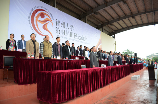新闻中心讯/11月12日上午8时,福州大学第44届田径运动会在旗山校区第一田径场隆重开幕。校领导陈永正、陈尚义、陈少平、邹毅、范更华、王健以及第44届田径运动会组委会全体委员、各学院和部处领导出席了开幕式。