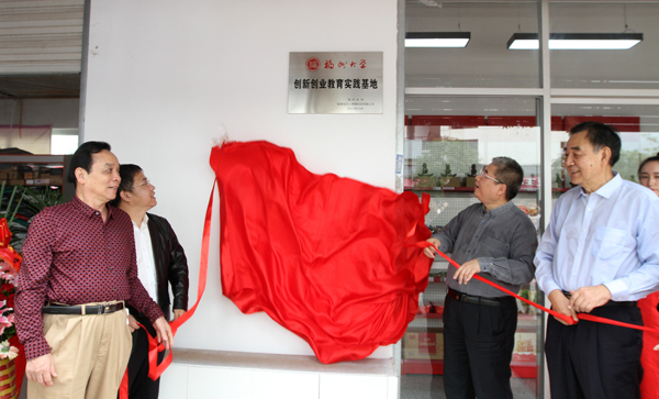 福州大学党委副书记陈少平、原福建省工商局局长赵觉荣、福建金凤经济发展促进会副会长兼秘书长郑开训、福州大学学生工作处(部)处长程文忠、福州市青年创业会促进会会长、福建光阳蛋业股份有限公司董事长余劼共同为福州大学创新创业教育实践基地——福大人商城O2O体验店开业剪彩,并为实践基地揭牌。
