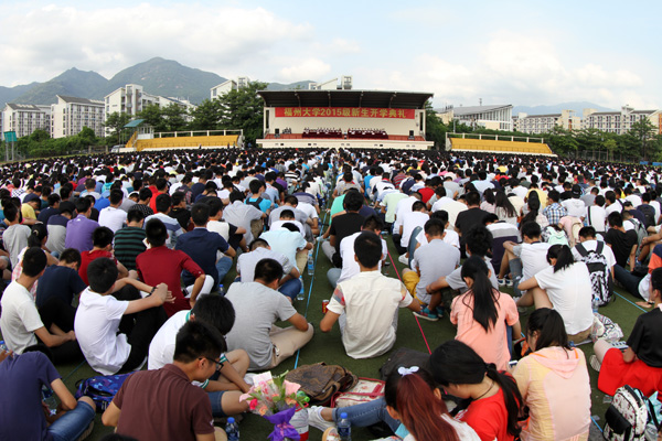 新闻中心讯/9月10日上午,福州大学在旗山校区一区操场隆重举行2015级新生开学典礼。校领导陈永正、付贤智、陈尚义、陈少平、邹毅、范更华、王耀华、王健出席了开学典礼并在主席台就坐。典礼由陈少平副书记主持。