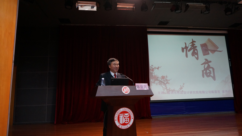 新闻中心讯/12月20日下午,深圳市市政设计研究院董事长、福州大学深圳校友会会长陈宜言校友应福大邀请,在旗山校区图书馆明德厅作了一场主题为《情商》的讲座。福大党委陈少平副书记会见了陈宜言董事长,并和校友会、学生处等相关部门负责人以及200余名学生代表等参加讲座。