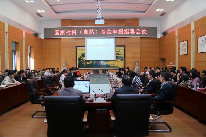 新闻中心讯/ 11月21 号下午,福州大学社科处在旗山校区行政南楼123会议室举办国家社科(自然)基金申报指导会。此次会议的嘉宾厦门大学经济学院国际经济与贸易系系主任、国家社科基金重大项目首席专家彭水军教授,以及福州大学长江学者、经济与管理学院李登峰教授,对2015年国家社科(自然)基金项目申报进行专题辅导。在研校科技启动基金(社科)项目负责人、2014年校科技启动基金(社科)新立项负责人、校社科科研扶持基金(社科)项目负责人、近年校人才(社科)基金获资助者、拟申报2015年国家社科(自然)基金者参加了会议,并与主讲人进行了现场交流互动。