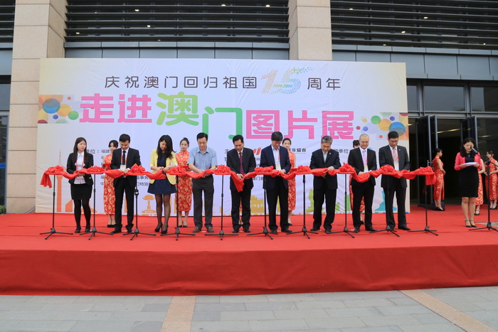 下午,“庆祝澳门回归十五周年·走近澳门”图片展开幕典礼暨赠书仪式在旗山校区图书馆广场举办。省委统战部副部长、福建省海外联谊会副会长陈飞,中央人民政府驻澳门特别行政区联络办公室台湾事务部副部长王升,福建省人民政府教育厅副厅长吴向阳,福大党委副书记陈少平,福建省青年联合会副主席、省学联主席王薇薇,澳门立法会议员、中华青年进步协会创会会长施家伦,中华青年进步协会会长林英培,澳门闽台总商会副会长王树林等主礼嘉宾出席仪式并剪彩。随后图书馆馆长刘敏榕代表学校接受了施家伦先生赠送的一批有关澳门经济历史文化的珍贵书籍。陈少平副书记代表学校致辞,澳门中华青年进步协会的本次来访,积极催化福大青年学子和澳门青年之间友谊与希望的种子。希望今后双方应更多沟通交流,密切联系,增进友情,实现更宽、更广和更深的互动与合作。“庆祝澳门回归十五周年·走近澳门”图片展在我校设展两天,吸引了很多福大学子驻足观展。