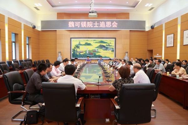 校党委陈永正书记在追思会上发言,魏可镁院士的逝世使我国化学化工学界和教育界失去了一位杰出的科学家,使我们失去了一位德高望重的良师益友,这是科技教育界和福州大学的损失。他指出,魏可镁院士的精神是中国教育工作者勇于拼搏、无私奉献的精神,是新时期践行社会主义核心价值观的杰出代表。我们要总结学习魏可镁院士锲而不舍、勇于探索的创新精神;生命不息奋斗不止的拼搏精神;热爱祖国、造福人民的奉献精神;和唯才是用、提携后人的人梯精神。日前学校已下发《关于学习宣传弘扬魏可镁院士勇于拼搏无私奉献精神的决定》,并将在全校范围开展向魏可镁院士宣传学习的系列活动,利用校内各种媒介广泛宣传报道魏院士的精神;建设纪念雕塑;在学生中广泛开展深入学习魏院士精神的主题活动等。陈永正书记号召大家,我们要将失去魏院士的悲痛和追忆情怀,化为凝心聚力建设高水平“211工程”大学的不竭动力,进一步激发全校师生立足本职、干事创业的激情,努力早日实现把福州大学建设成为创业型东南强校的奋斗目标,以告慰魏可镁院士的在天之灵。