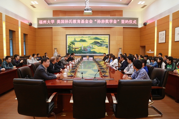 新闻中心讯/11月12日上午,福大与美国孙氏教育基金会进行了“孙赤奖学金”的签约仪式。孙赤先生之子孙阳先生、基金会副理事长郑柏霖教授、福大党委陈少平副书记以及相关部处和学院的负责同志参加了签约仪式。