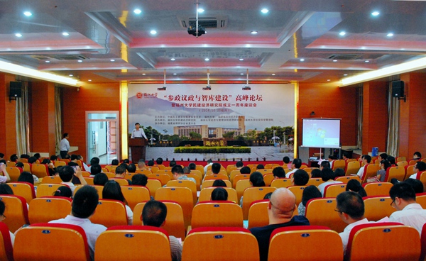 新闻中心讯/ 10月20日,“参政议政与智库建设”高峰论坛暨福州大学民建经济研究院成立一周年座谈会在福州大学(怡山校区)经济与管理学院MBA大楼国际学术报告厅隆重召开。福建省政协副主席、民建省委主委郭振家,省政协常委、副秘书长、经济委员会副主任、民建省委专职副主委郭学军,省政协委员、省政协经济委员会副主任、莆田学院原党委书记郑才木,新闻出版广电局党组书记李闽榕,省社科联党组书记、副主席冯潮华,福州大学副校长王健等领导出席了开幕式。