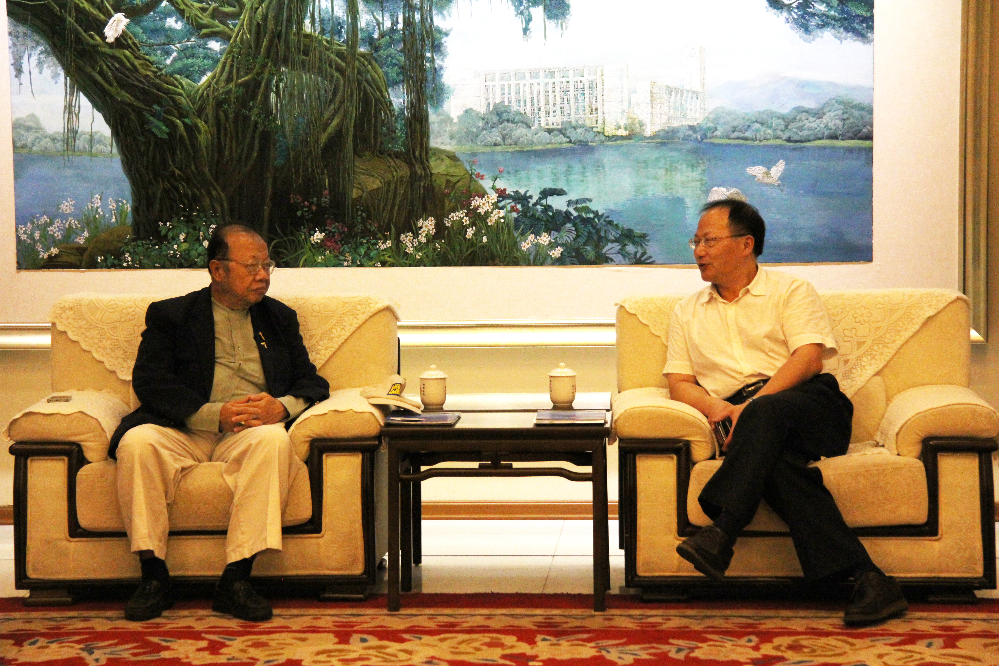 福大副校长王健会见了泰国客人,他对陈主席的到来表示热烈欢迎,并介绍了福大来华留学生教育的最新发展,希望借助陈主席来校访问的契机,扩大福州大学在泰国、缅甸等周边国家的影响力,招收更多的留学生来校攻读工科专业。陈主席介绍了泰国华文教育的发展历程以及联合会目前所开展的各项工作,表示愿意推动福州大学与泰国相关大学的教育合作。宾主双方还就在泰国清迈设立孔子课堂或学院的可能性进行了深入探讨。