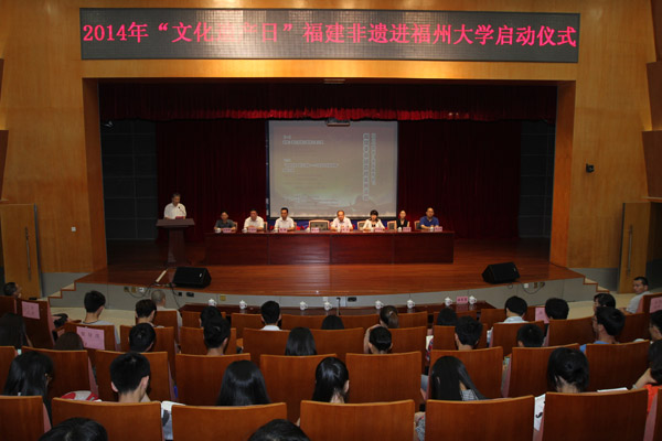 新闻中心讯/6月10日,恰逢福大与福建省文化厅共建非物质文化遗产传播教育基地一周年之际,“文化遗产日”福建非遗进高校系列活动在旗山校区举行,省文化厅陈吉副厅长、省艺术馆陈秀梅馆长、福大党委陈少平副书记以及福建省文化厅、福建省艺术馆、福州大学相关单位负责同志出席了启动仪式。