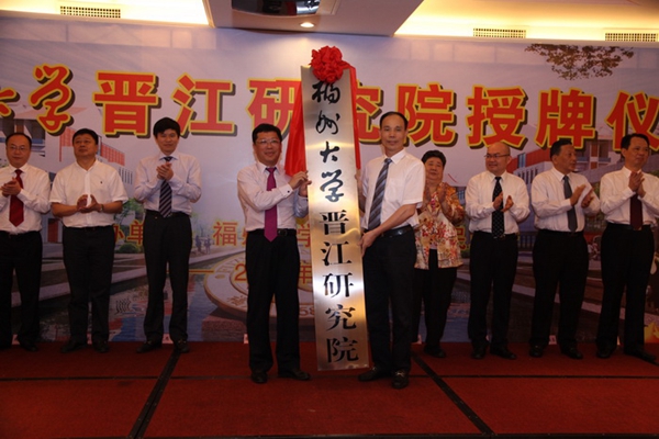 新闻中心讯/6月19日上午,福州大学晋江研究院授牌暨项目签约仪式在晋江市金井镇举行。福大陈国龙副校长代表学校授予福州大学晋江市科教园区领导小组办公室“福州大学晋江研究院”、“福州大学国家技术转移示范晋江分中心”牌匾,授予第一期的15家晋江市的企事业单位“福州大学实践基地”牌匾。国家技术转移示范项目、福州大学晋江科教园区规划设计项目、环境影响评估设计项目、服装设计与研发项目、鲍鱼健康养殖项目、晋江市“智慧林业”工程建设项目、高素质经营管理人才培养项目等11个在仪式上成功签约。