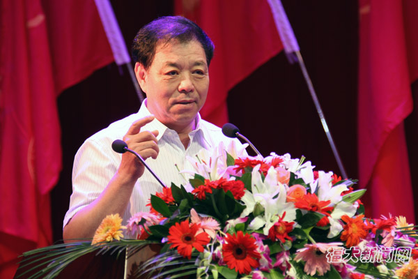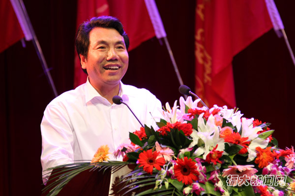 我校原校长、校友总会吴敏生教授在会上致辞 记者 李连富 摄