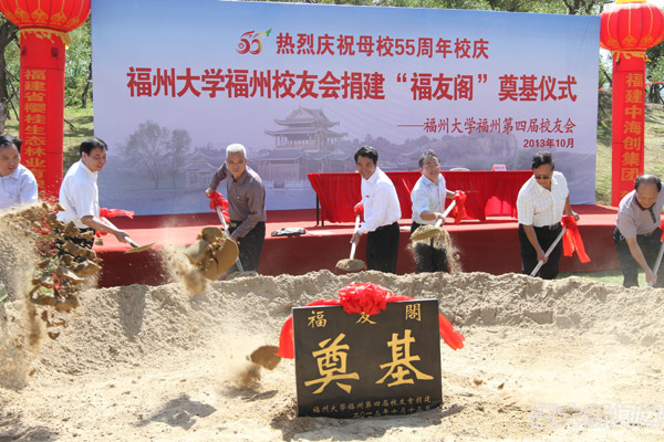 新闻中心讯/10月13日上午,福州大学校友会第四届校友大会暨福州校友会捐建母校人文景观“福友阁”奠基仪式在福州大学旗山校区隆重举行,福大党委书记陈永正、校友总会会长吴敏生、党委副书记陈少平、副校长王耀华、统战部部长兼校友总会秘书长程玉敏、企业协会代表王文贵、原福建政协副主席李祖可,兄弟校友会代表以及来自福州市各领域200多名校友代表参加了此次大会。会议由福州校友会副秘书长、团省委青年工作部部长陈怡主持。