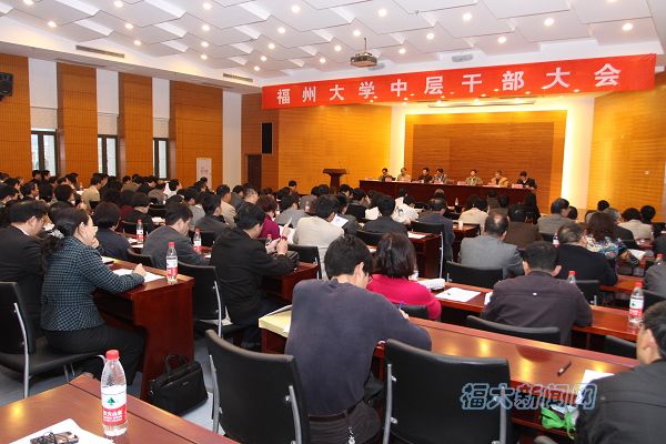 新闻中心讯/ 3月23日下午,福州大学在旗山校区行政北楼325会议室召开中层干部大会。校领导陈永正、付贤智、陈尚义、陈少平、范更华、王耀华、高诚辉出席会议,会议由付贤智校长主持。