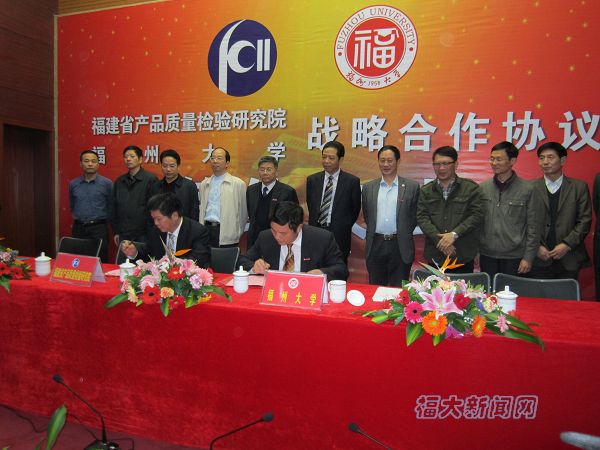 新闻中心讯/11月21日下午,福州大学与福建省产品质量检验研究院战略合作签约仪式在省质检院马尾基地隆重举行,福州大学党委陈笃彬书记、王耀华副校长、高诚辉副校长和省质量技术监督局、省产品质量检验研究院领导出席了签约仪式,学校有关部门和学院负责人参加了签约仪式。