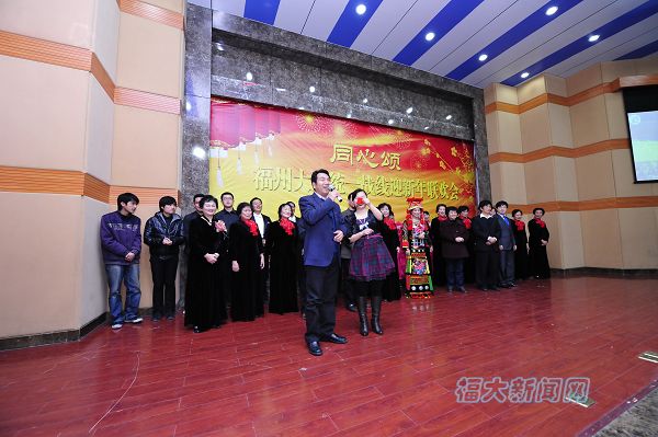 新闻中心讯/ 2011年12月30日下午,福州大学统一战线在怡山校区科报厅举行“同心颂”迎新年联欢会,校领导陈永正、王健应邀参加,机关各部处领导、各学院党委、各党总支及直属党支部书记、统战委员与学校各级人大代表、政协委员、各民主党派、统战团体成员、无党派人士以及少数民族师生代表等共400余人欢聚一堂,畅叙情谊,共迎新年。
