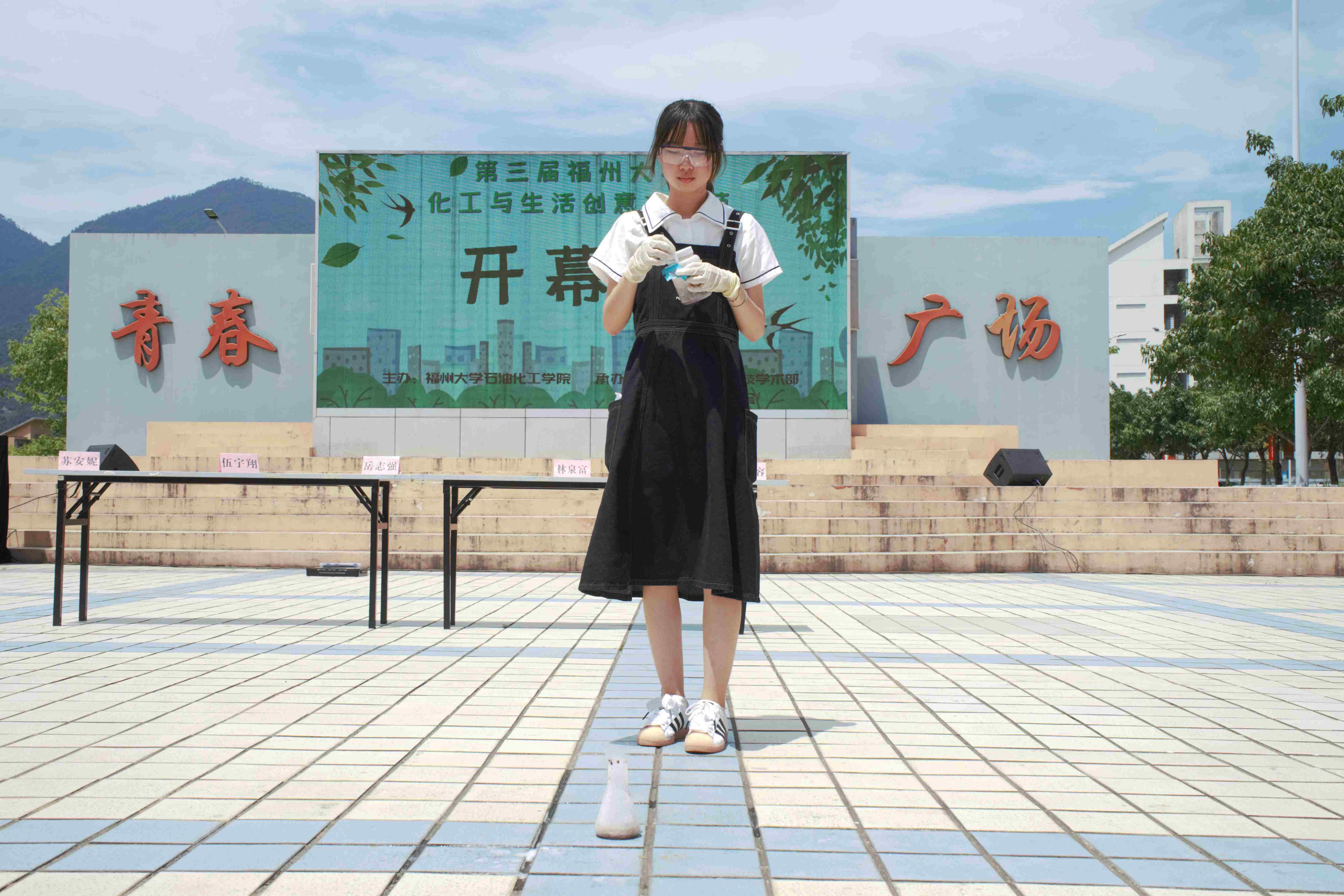 新闻中心讯/精致的人工琥珀摆件、喷射而出的大象牙膏、被火焰缠绕的手掌......福州大学青春广场上进行的各式奇妙实验令在场的同学应接不暇。5月16日,福州大学第三届化工与生活创意文化节顺利举办。