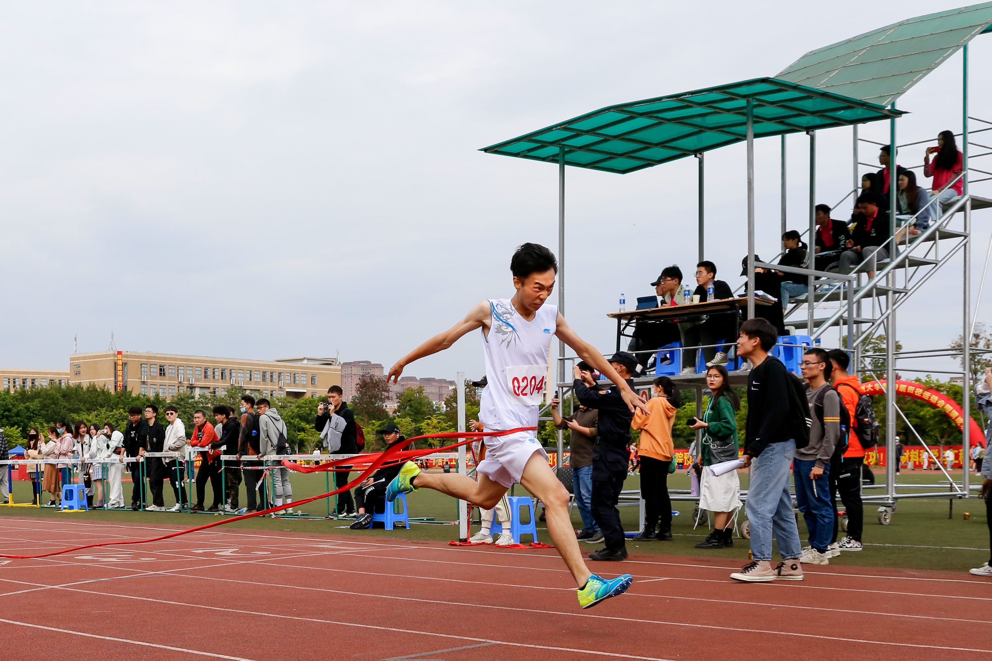 比赛开始后,随着一声枪响,选手们开始向终点冲刺。来自经管学院的黄圣钊同学率先发力,比赛之初就与其他选手拉开了差距。临近终点,无数关注的目光聚集在选手们最后的冲刺环节,观众席上的呐喊声,鼓声也一浪高过一浪,为自己学院的选手加油鼓劲。最终,黄圣钊同学以巨大的优势率先冲过终点线。