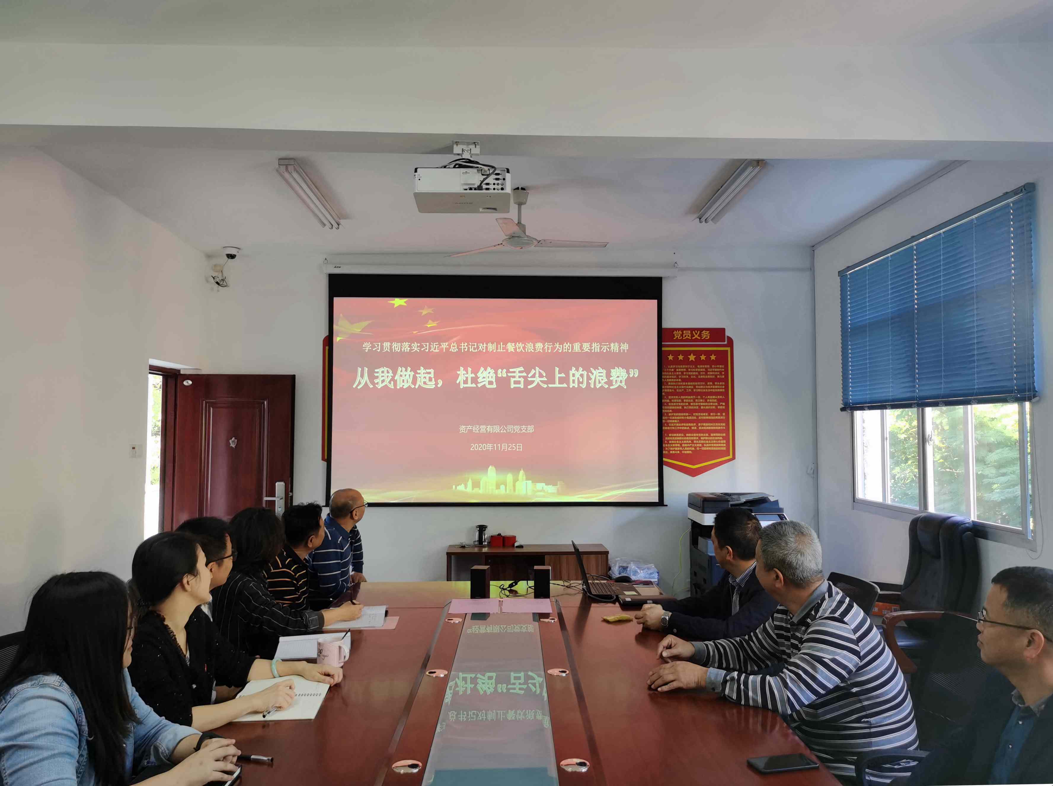 新闻中心讯/为进一步贯彻落实习近平总书记关于制止餐饮浪费行为的重要指示精神,11月26日上午,资产经营有限公司党支部组织开展“厉行节约、反对浪费”主题党日活动,党支部全体党员参加了此次活动。