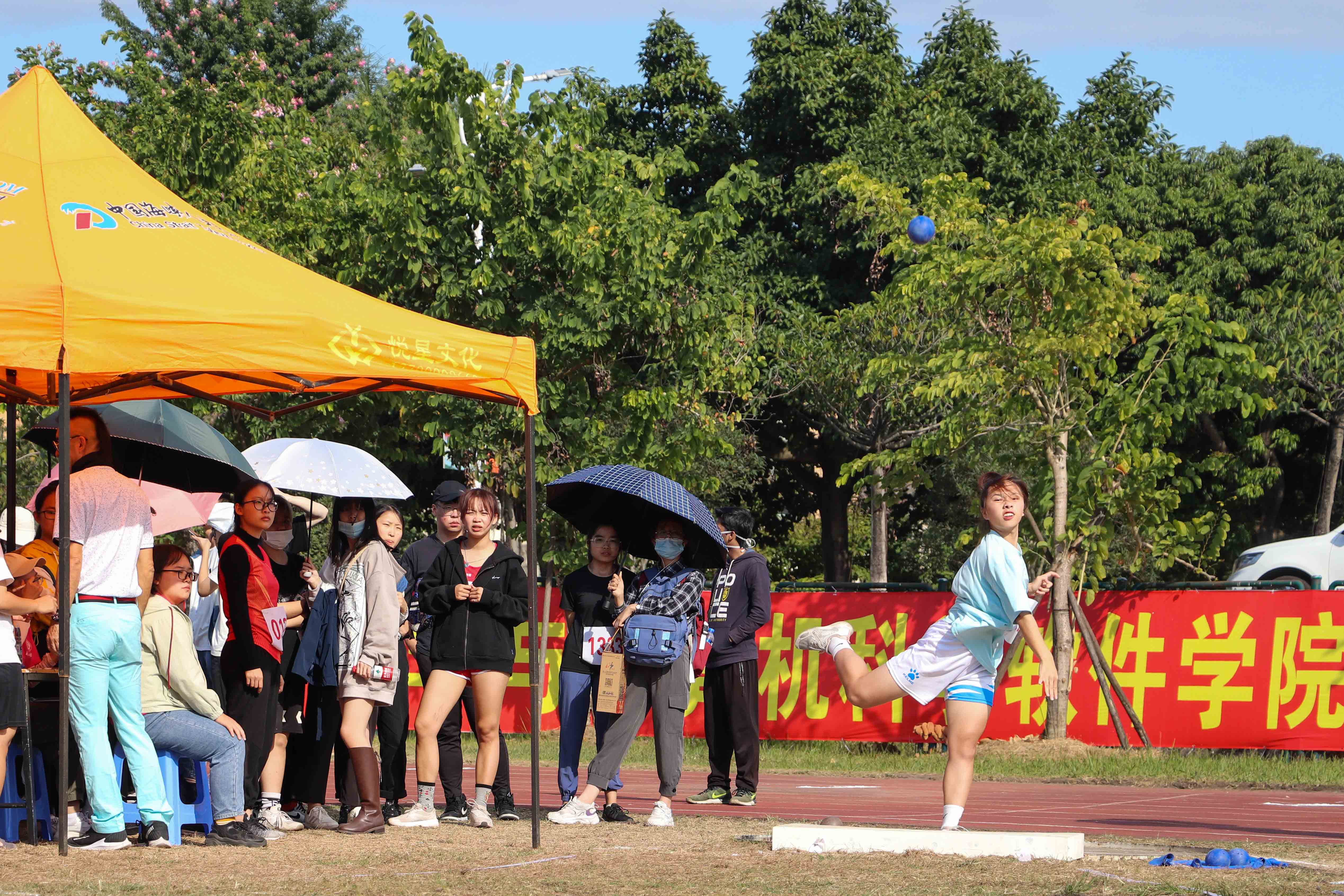 铅球运动对运动员的体质与上下肢力量有很高的要求。赛前,选手们为即将到来的比赛做着热身运动,以期达到自己最好的状态。比赛伊始,来自至诚学院的陈雅青同学在第一次投掷中表现尤为出色,以7.01米的成绩吸引了全场的目光。随着比赛的进行,选手们渐入佳境,成绩也一次比一次亮眼。