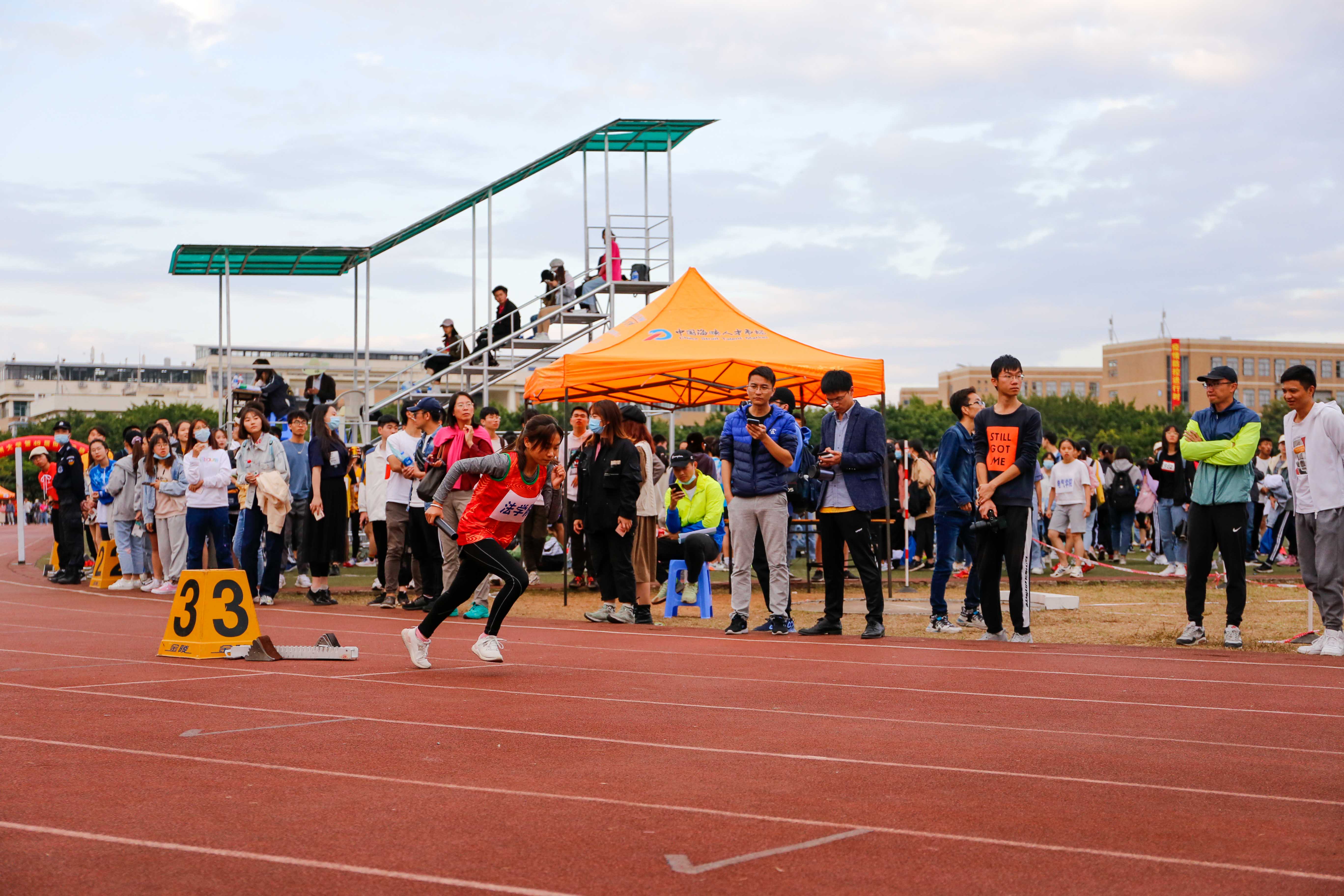 新闻中心讯/11月13日下午16时20分,女学乙4×400米接力赛在一区田径场上拉开帷幕。此次比赛共有9个学院参与,分两组进行。