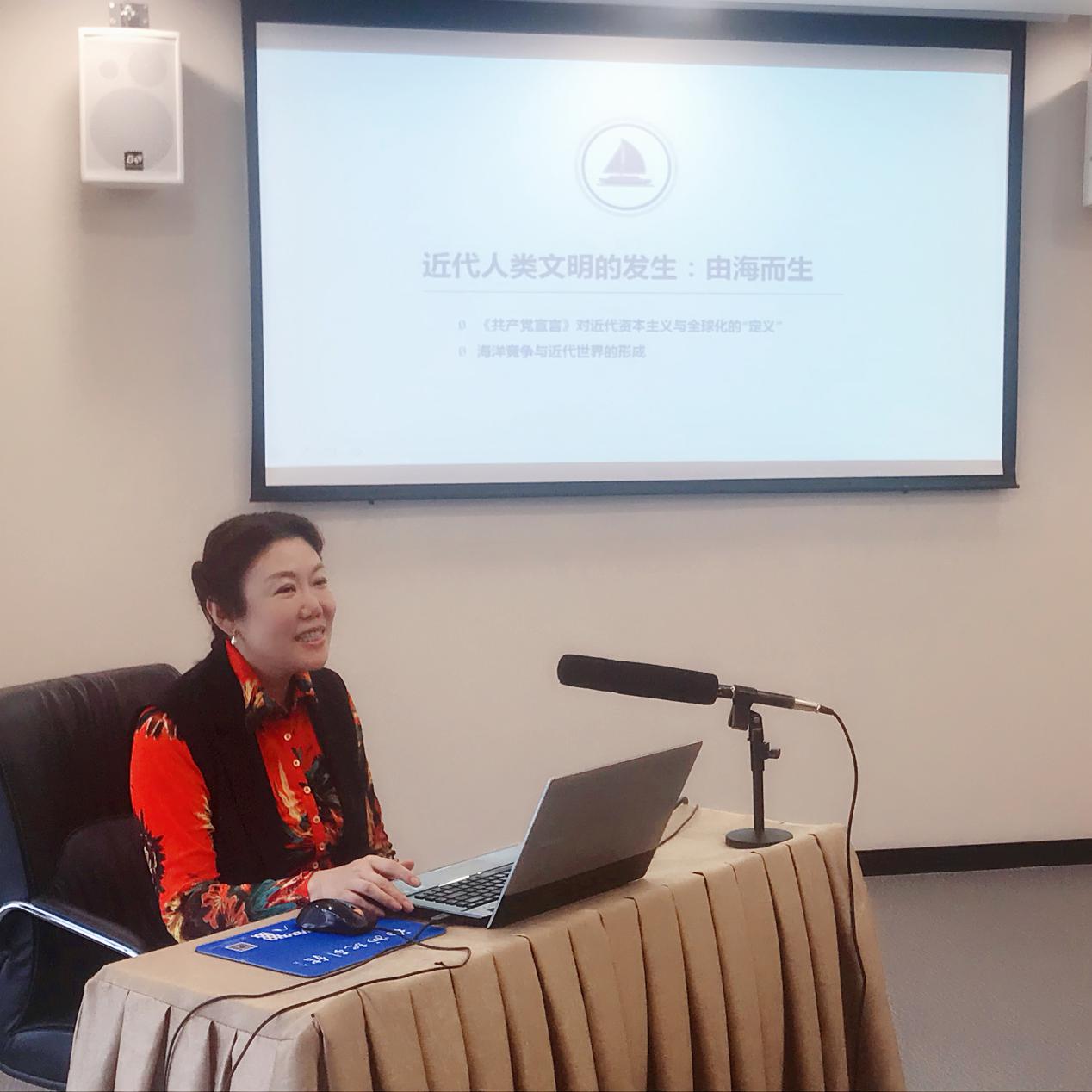 此次,因福州市直机关干部夜校云课堂课程时长问题,苏文菁教授深入浅出地通过“海洋文明的基本概念”和“近代人类文明的发展”两个部分将《海洋与人类文明的生产》课程的精华部分做了别出心裁的展示,通过新阶层与阶级的产生(资产者与资本阶级)、新的生活组织方式(资本主义、工业标准化、全球化)、新的知识体系(地理空间、教育制度、植物学等)、新的法律体系(国际法及各种子系统)、新的金融制度(有限责任公司、保险系统、银行系统等)和“哥伦布大交换”中物产和人员的交流生动细致地诠释了“由海而生的近代人类文明的发生”。