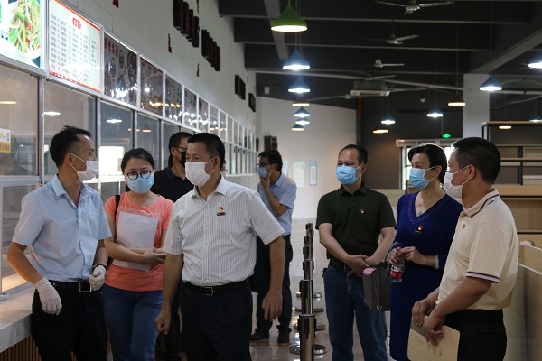 检查组一行在学院领导的陪同下,首先来到校外的居校健康观察场所青逸酒店现场检查准备情况,详细了解居校健康观察场所的人员、设备、设施、物资等各项准备工作。在校门口,检查组一行检查了临时隔离点建设情况、询问学生返校复学报到程序及相关应急措施等,随后按照厦门工艺美术学院的规定和要求,测温、扫码进入校园。学校检查组一行先后还实地检查了图书馆、食堂、厦门工艺美术学院医务室及学生宿舍等,详细了解相关情况,查看物资准备情况等,对厦门工艺美术学院的返校复学疫情防控准备工作给予充分肯定。厦门工艺美术学院党办、院办、总务科、保卫科、医务室等部门负责人参加了上述检查活动。
