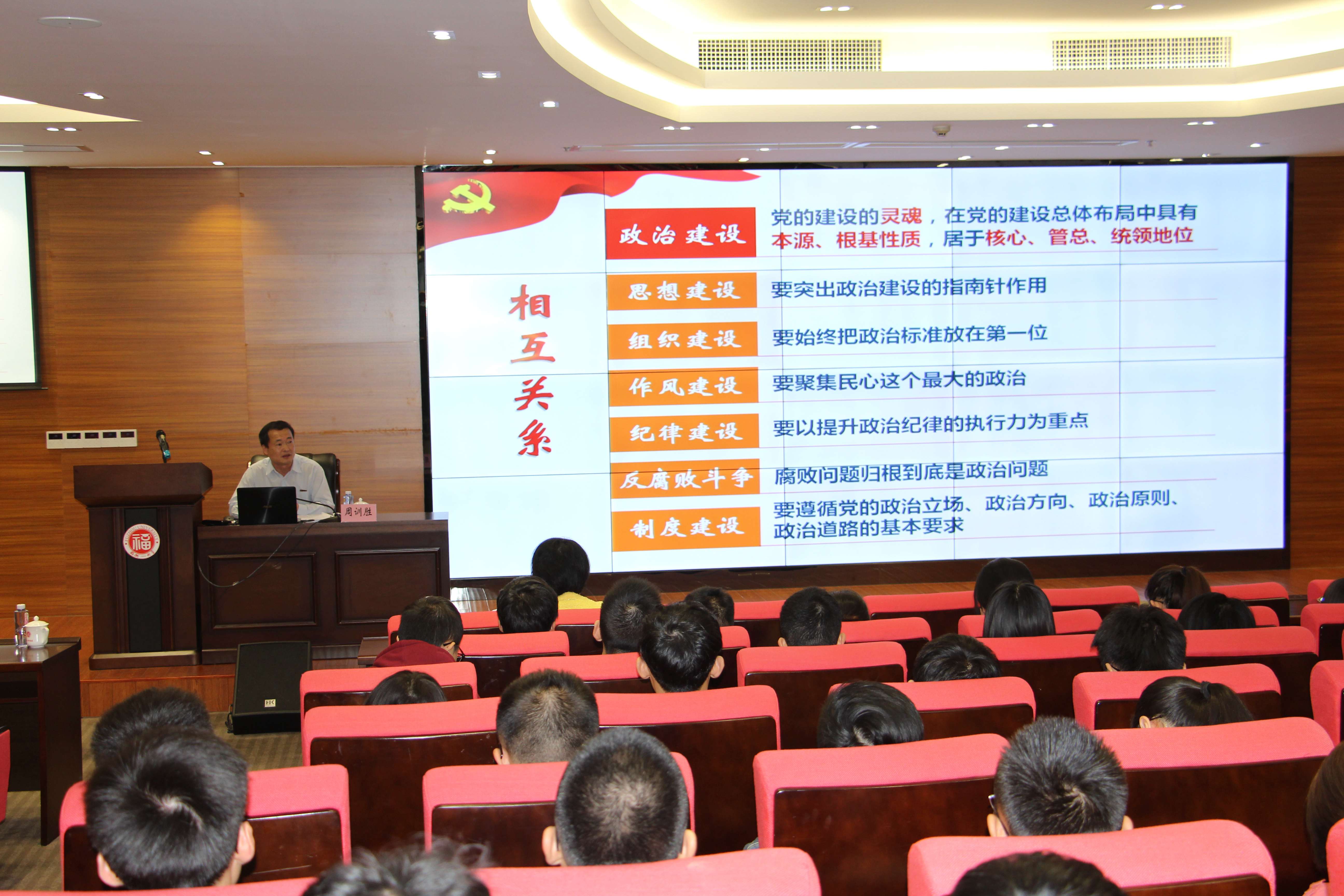 新闻中心讯/11月14日晚,福州大学党委党校第223期研究生党支部书记培训班“不忘初心、牢记使命”专题党课暨结业仪式在福州大学国家大学科技园一楼报告厅顺利举办。校党委组织部部长周训胜为学员们讲授了题为《加强党的政治建设》的党课。专题党课后,举行了培训班结业仪式。