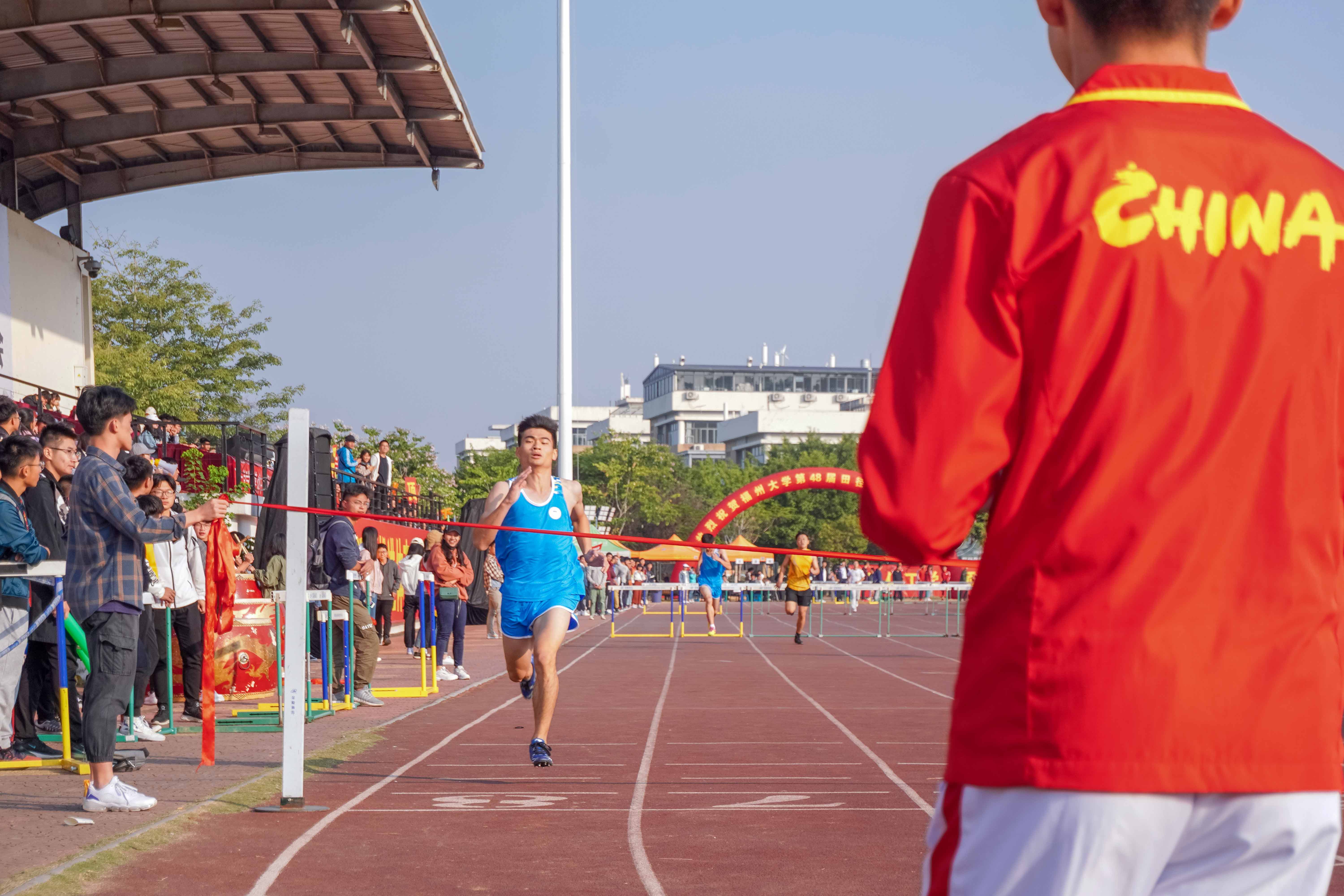 比赛还未开始,各学院的的鼓声和振奋人心的口号已经点燃了赛场的热烈气氛。经过一番热身后,第一组运动员们上道准备,随着发令枪“砰”的一声,运动员们如离弦的箭一样冲了出去,最终,来自数计学院的林坤贤遥遥领先,首先撞线。来自经管学院的黄杰炜也拼尽全力,取得第二。紧接着,第二组运动员们也开始了比拼,伴着观众席上的加油助威,运动员们跨过了一个又一个栏,至诚学院的翁圣恒夺得第一。在第三组的比拼中,同样出自至诚学院的陈鑫斌和陈罕瑀取得了小组第一、第二的优异成绩。第四组较前三组相比,竞争尤为激烈。到最后冲刺时竟也一时难分上下,最终,化学学院的吴晋南险夺第一,经管学院的黄裕泷紧随其后,居于第二。