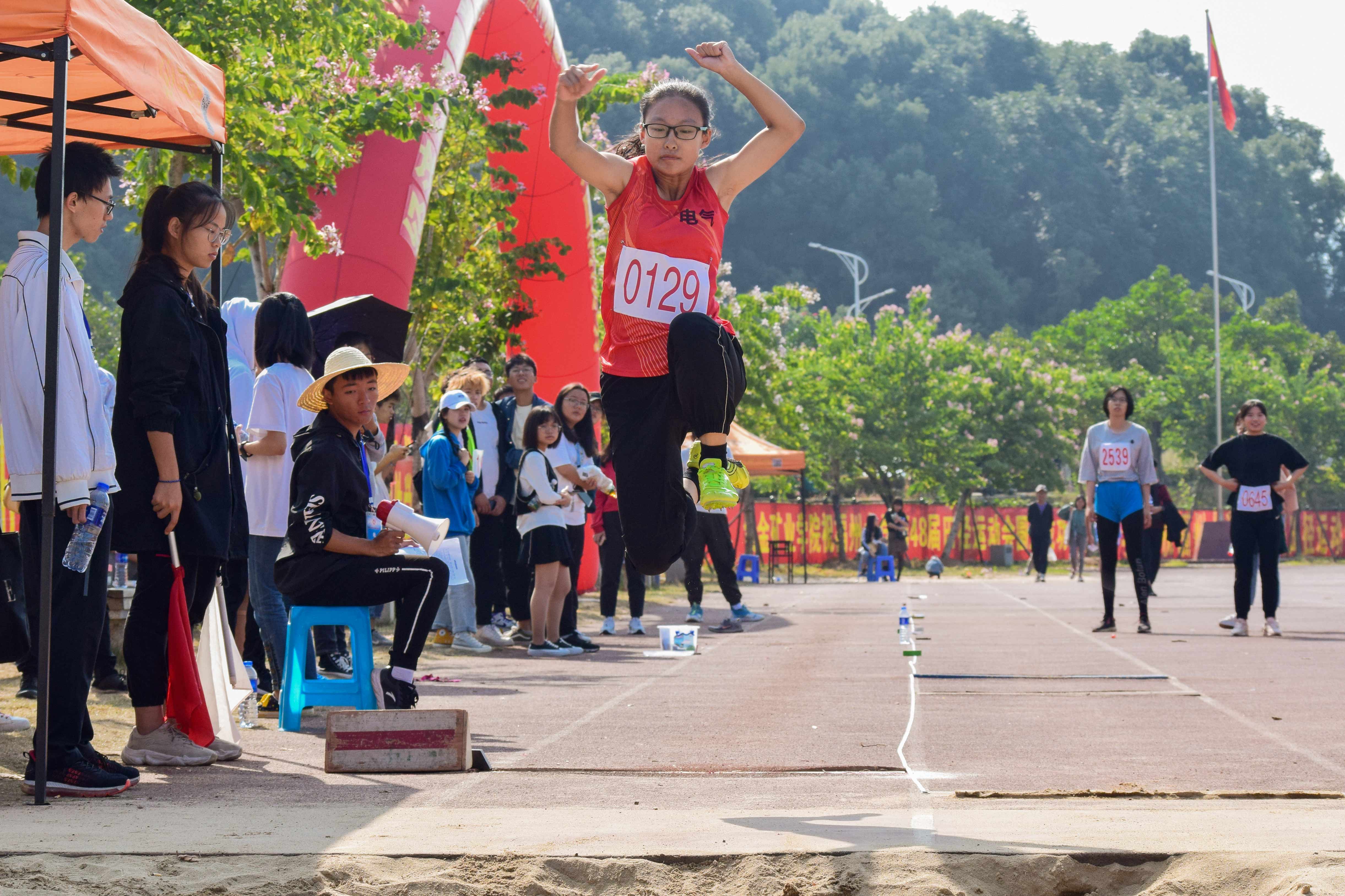 11月9日上午10时10分,女学乙跳远在一区操场东北坑拉开帷幕,来自六个学院的8名运动员参与到此次角逐中。