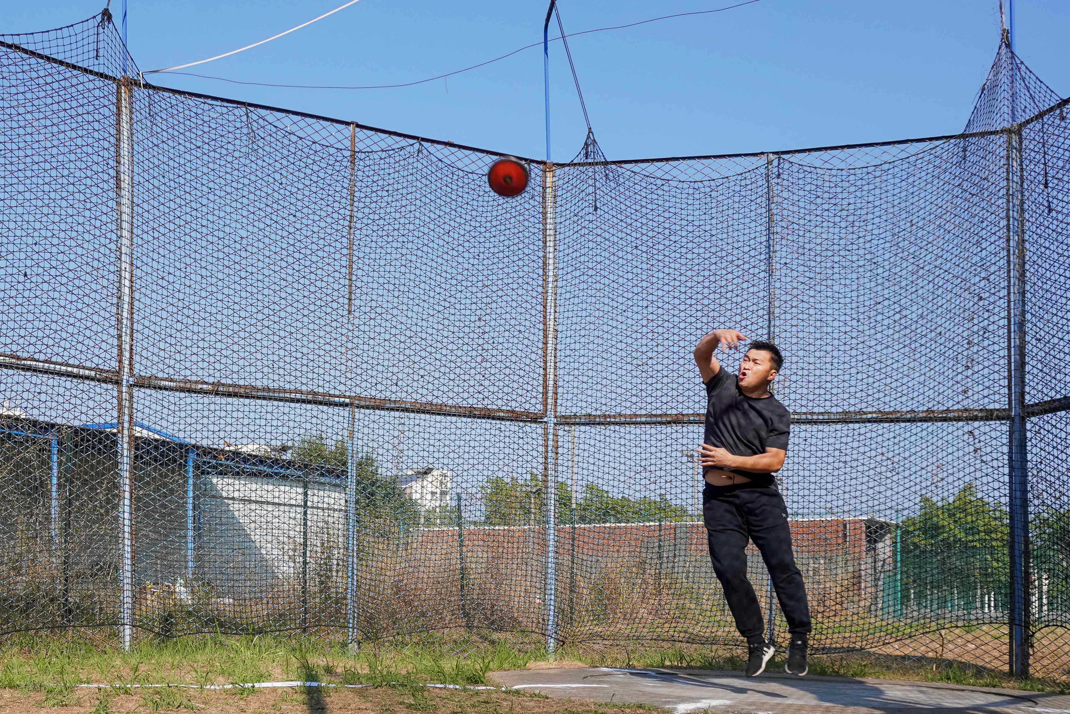 比赛前,选手们在赛场上进行试投,力求将自己的状态调整到最佳。摆好姿势,侧身,曲腿蓄力,后引,铁饼飞出。材料学院的卢杰老师越战越勇,在决赛的首投就掷出惊人的成绩。选手们的状态随着比赛的进行不断调整,一次次刷新自己的记录。