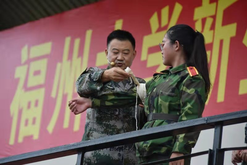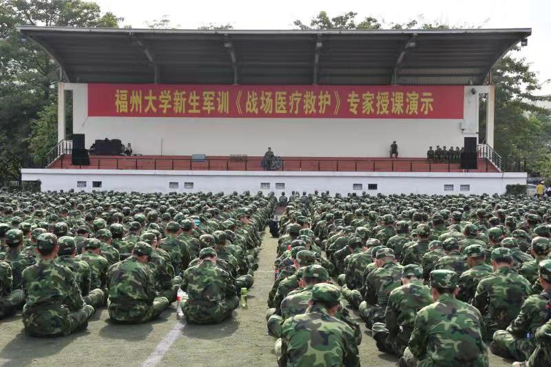 新闻中心讯/为贯彻落实《普通高等学校军事课教学大纲(2019版)》,适应立德树人根本任务和强军目标根本要求,提高学生国防意识和综合素养,9月15日下午,福州大学新生军训《战地医疗救护》专家授课演示会在福州大学旗山校区一区操场顺利举行。解放军陆军军医大学陶发胜教授担任主讲人,福州大学旗山校区2019级全体本科生参加本次演示会。