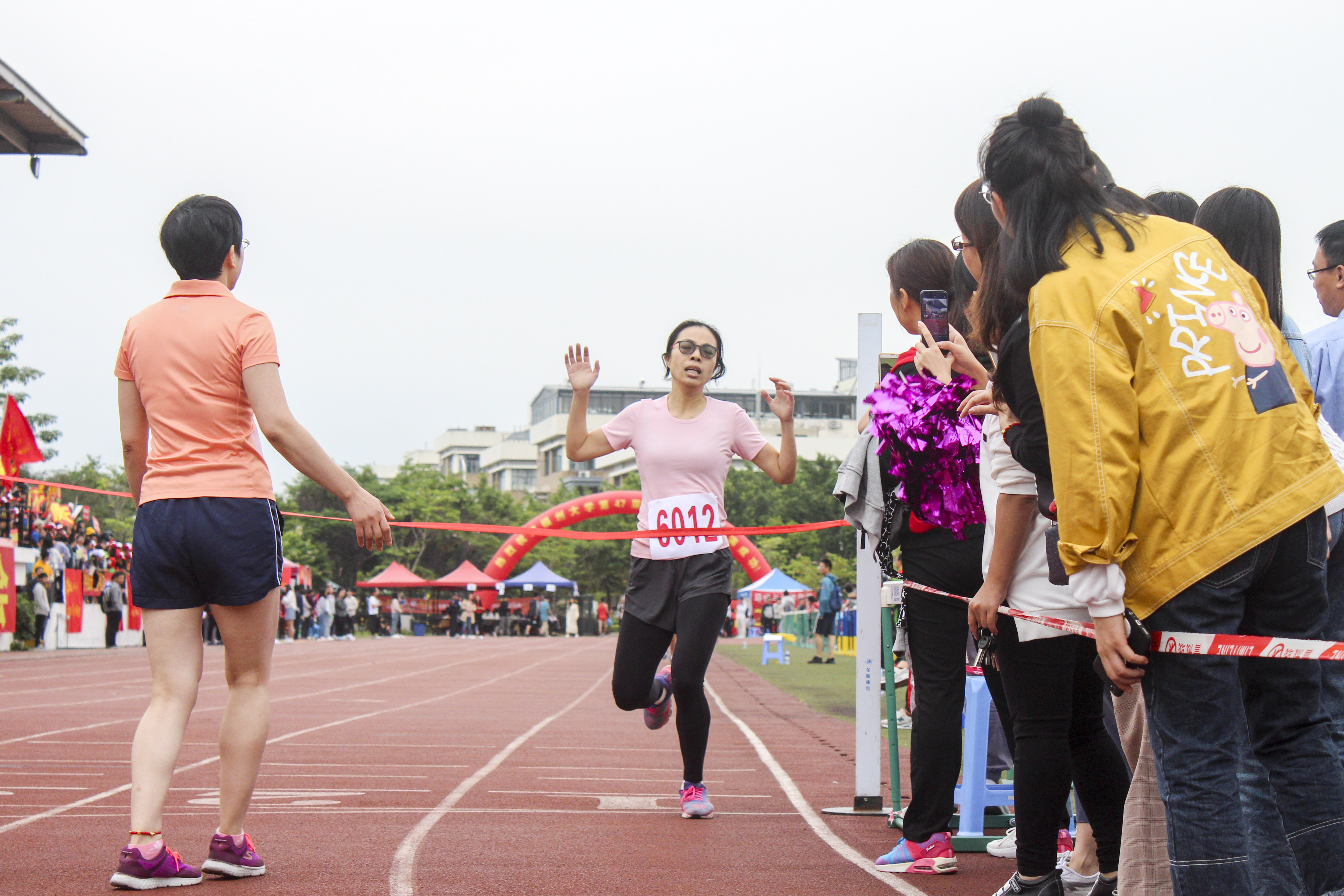 冷冷的天气,但摩拳擦掌的老师却冒出了薄汗。枪声响起,来自校直联队的程文芳老师一马当先,直接把其他老师拉开了差距,其他的老师也紧追不舍,第二圈的时候,体力不支的老师们始终咬牙坚持着。最后一百米,程文芳老师突然加速,牙关咬紧,奋力向前,第一个越过了终点线。