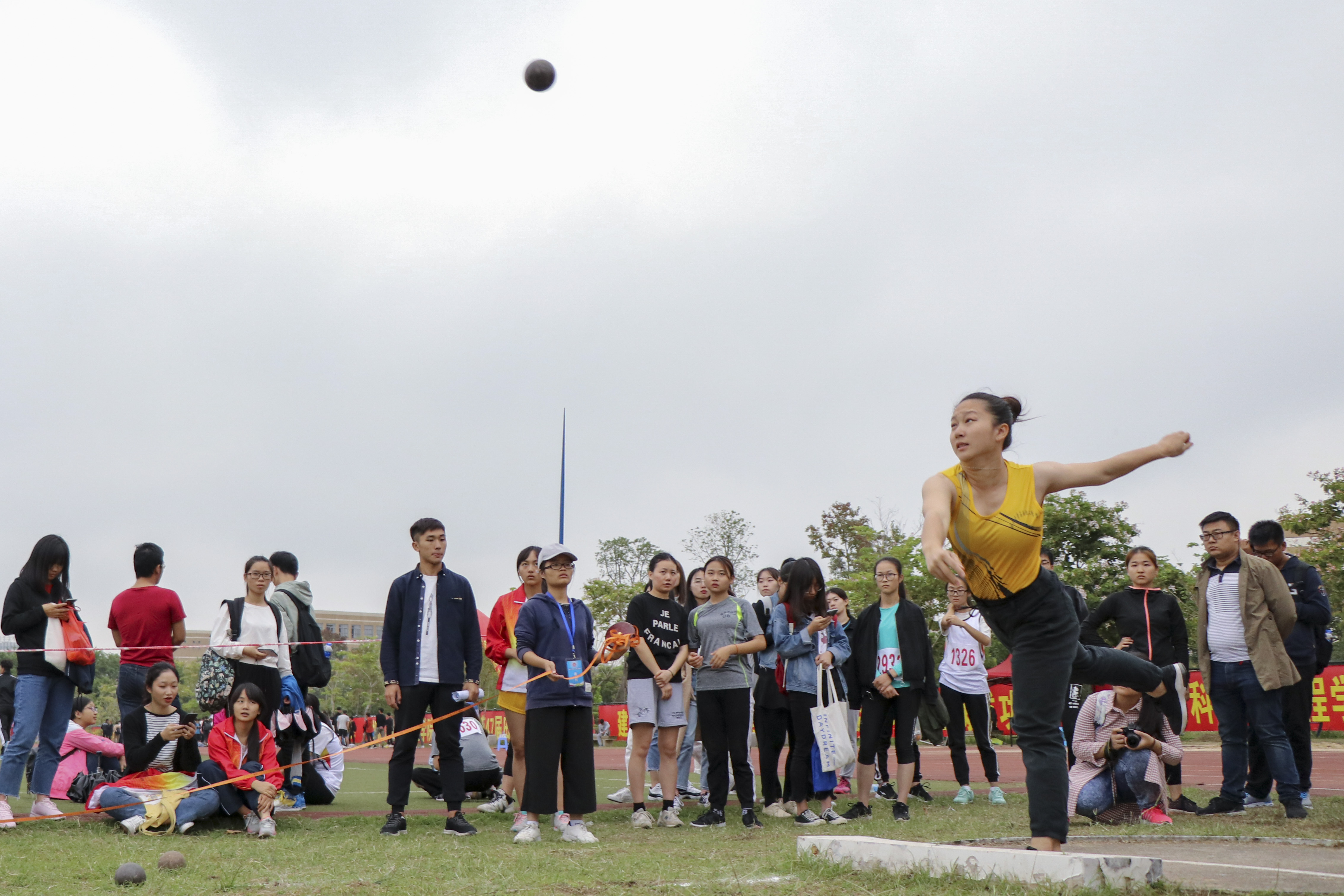 铅球是世界田径赛场上的传统项目,具有相当的观赏性。在比赛中,引无数师生驻足观看。