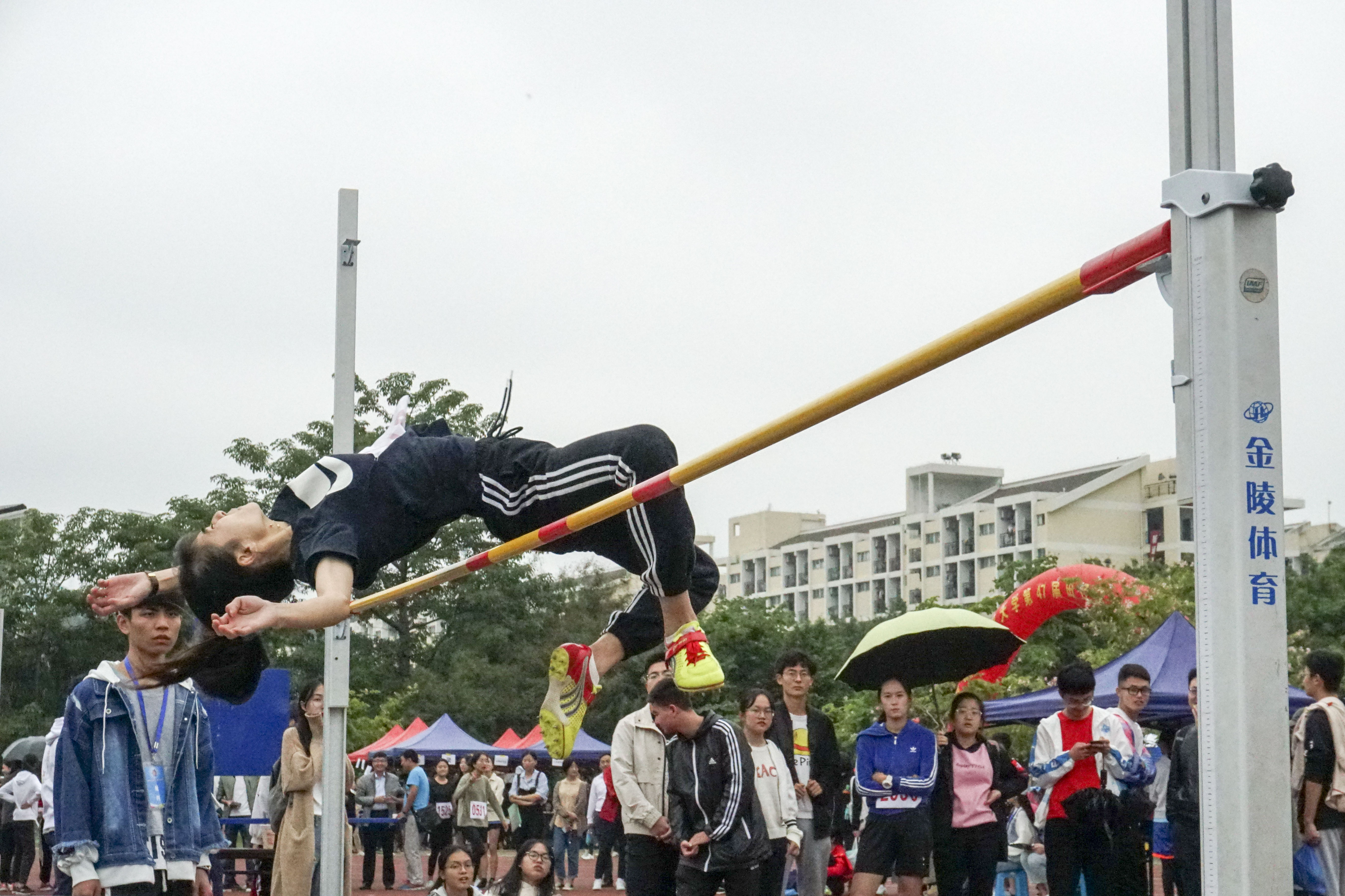 11月9日下午14时,在各学院高昂的加油呐喊声中,女学乙跳高决赛在西北区拉开帷幕。来自各个学院的学生热情高涨,积极地做热身活动。