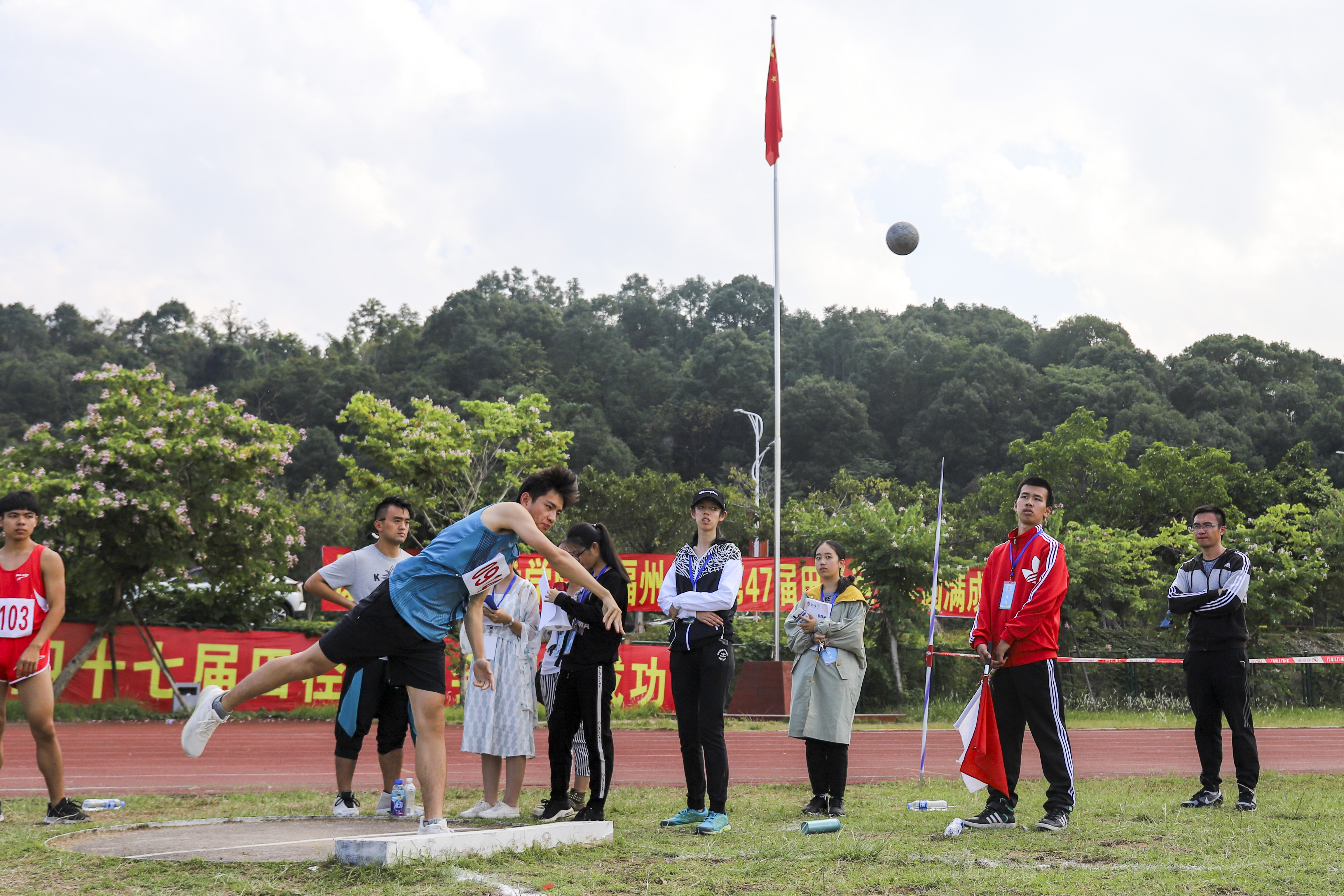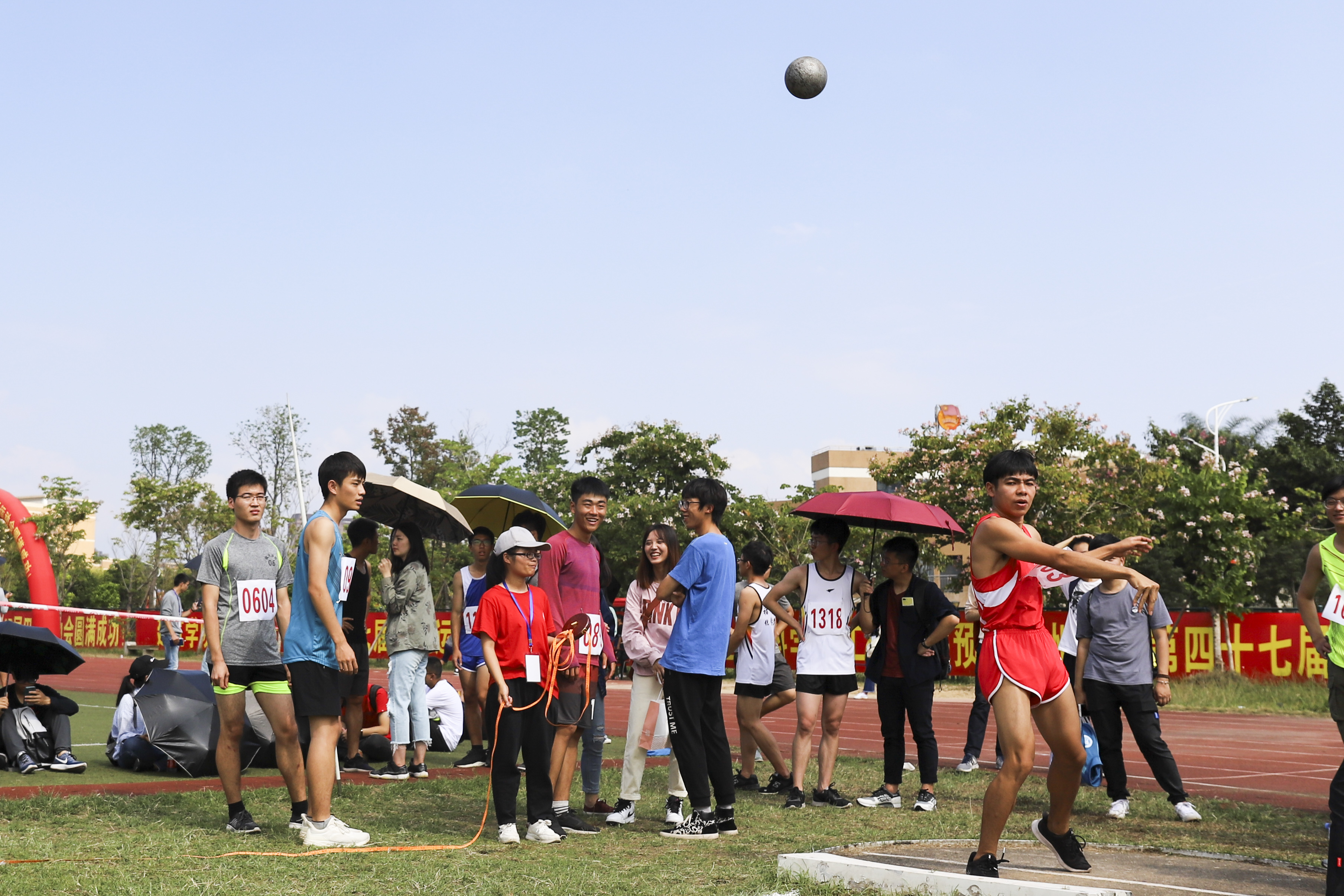 11月8日上午,男学甲铅球(十项之三)决赛在一区田径场在东南区举行,来自八个学院的18名选手参加了比赛。