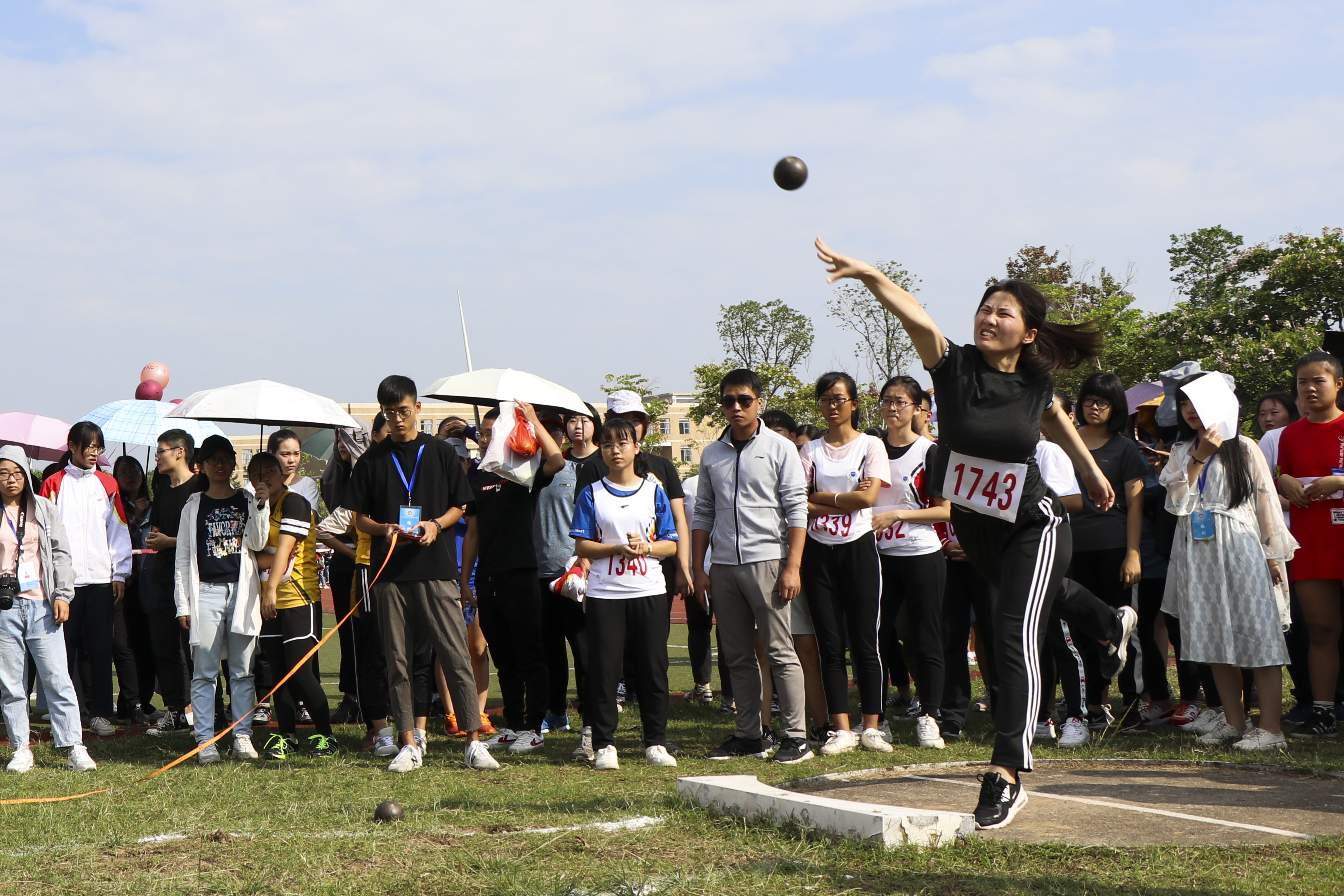 11月8日上午,女学甲铅球决赛在一区田径场东南区举行,来自9个学院的24名选手参加了此次比赛。
