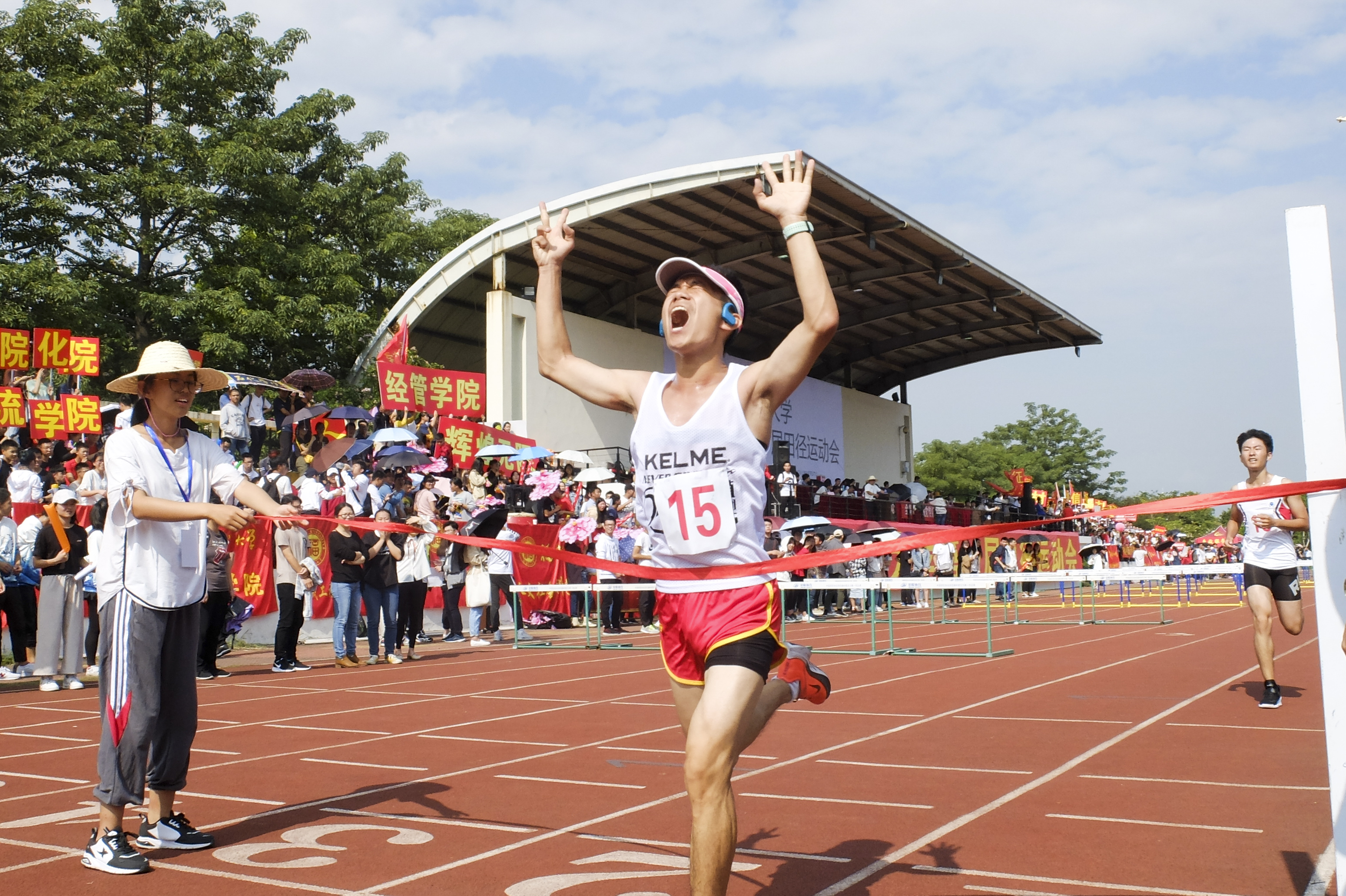 一声令下,运动员们同时冲出赛道,就像离了弦的箭一样迅速,来自物信学院的龚廷顺刚开始暂时领先,跑的十分卖力,各个选手也不甘落后。比赛进行至白热化阶段,赛场上的差距逐渐拉开,但每个运动员依旧竭尽全力。