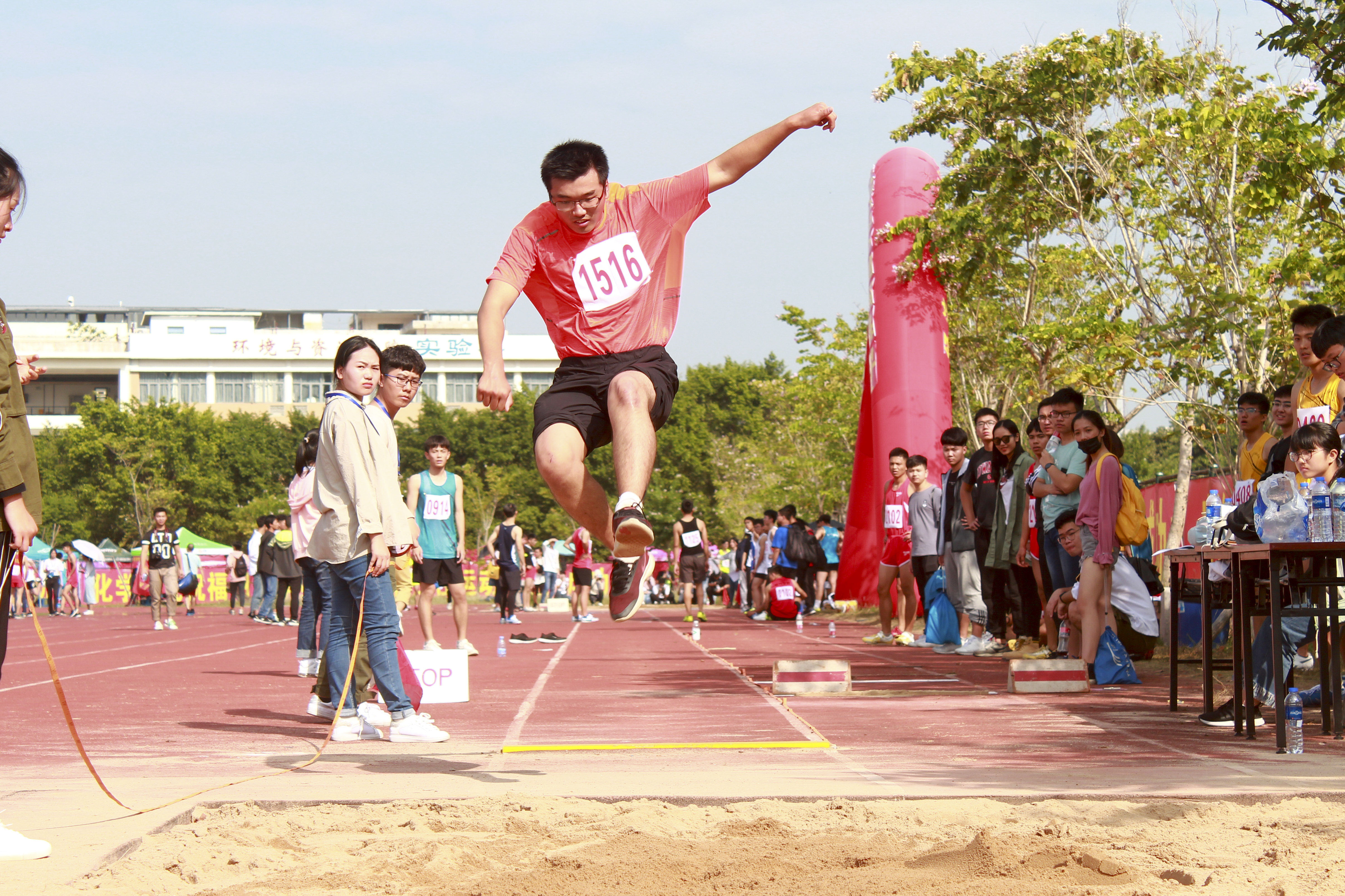 11月8日上午九点50分,男学乙跳远(十项之二)在东南坑拉开了帷幕。来自七个不同学院的13名运动员们将在朝阳下向着桂冠发起冲击。跳远项目有话着悠久的历史,它也是第一届奥运会的比赛项目之一,对选手的腰腹力量有着较高的要求。随着裁判员的一声哨响,比赛正式打响。比赛另分为三轮,运动员在经过三轮的拼搏之后取得最好成绩来角逐最后的冠军,第一个登场的是来石化学院的刘治邦,只见他深吸了一口气,身体微微后倾,像一支离弦的箭一样飞了出去,随着他双脚着地,地上留下了他的足迹。也许是第一轮登场,运动员们都有些紧张,第一轮中有三名运动员因犯规而没有成绩。第一轮结束后,来自石化学院的刘建军以5.78米的成绩的优异成绩暂列第一,而首个出场的刘治邦以5.45米屈居第二。