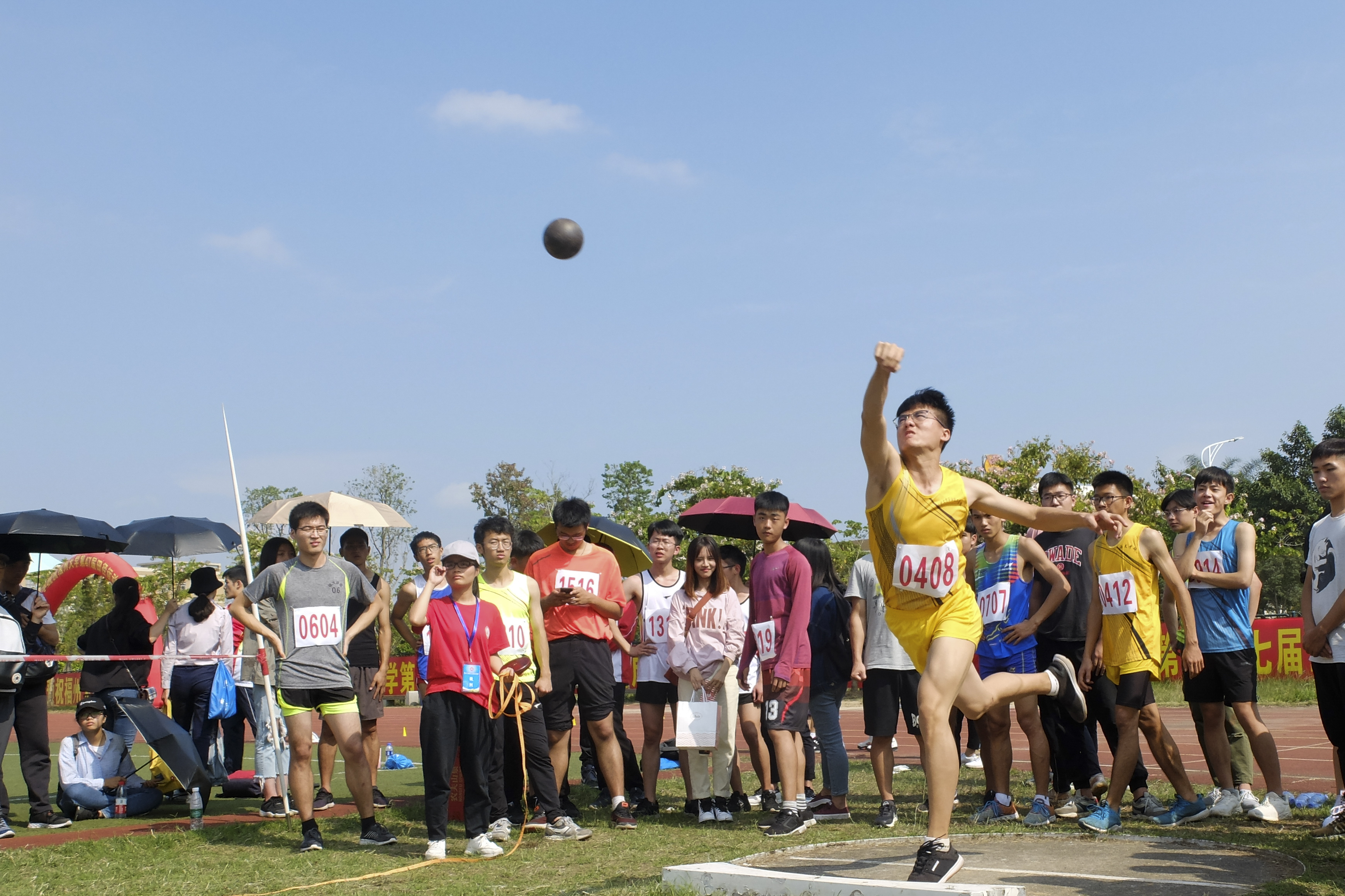 比赛开始,经过严格训练的他们,在比赛中,展现了优美的铅球动作,赢得了阵阵喝彩。看着选手们紧抓铅球,控制和平衡好方向之后,奋力发球,一道平滑的优美曲线划出,落地,吸引了观众的目光,每个选手都攒足了劲,动作干净利索,拼搏精神在焕发。来自石化学院的詹翔同学凭借着矫健的身姿,频频迎来赞赏的目光。太阳火辣,热情不减。