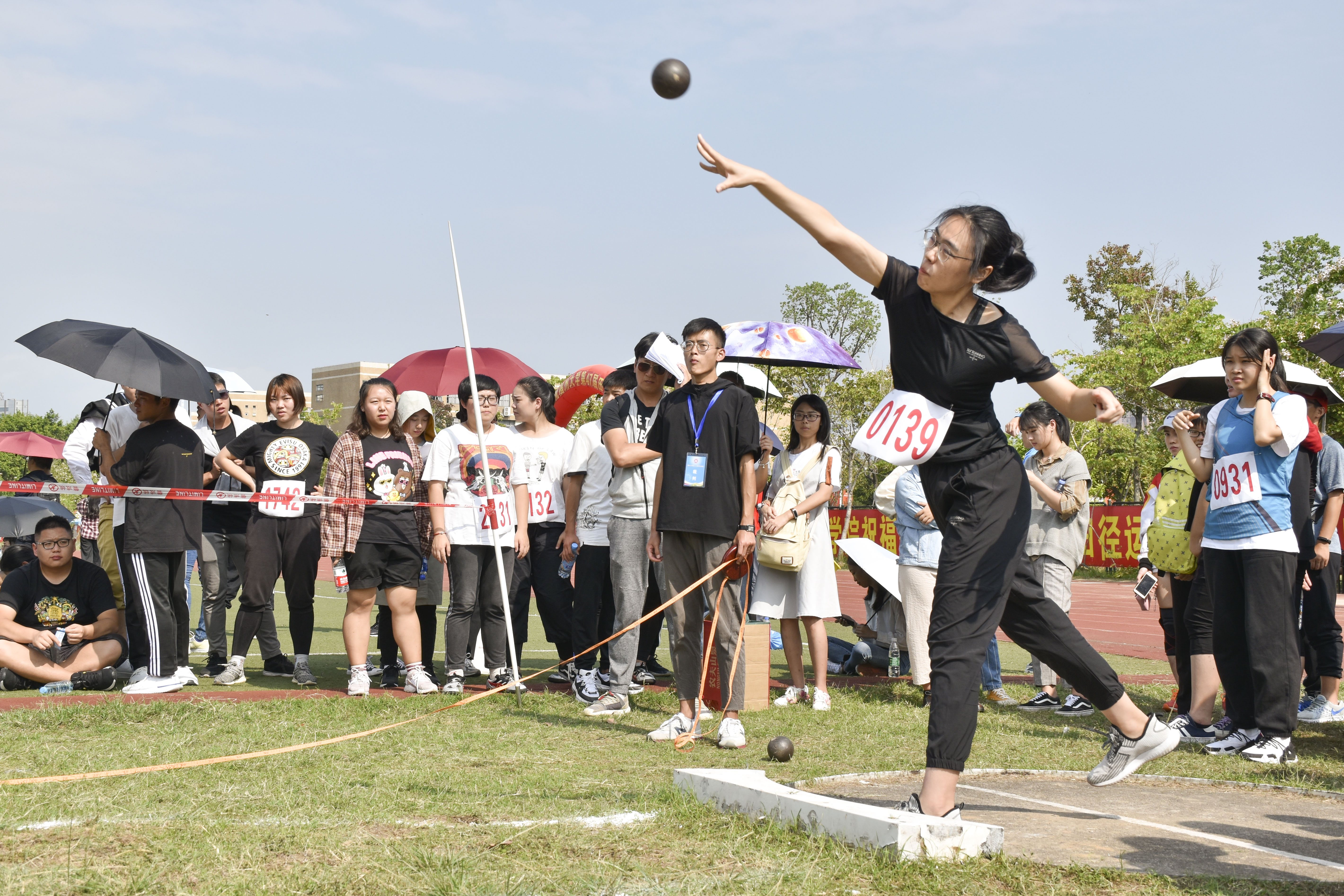 11月8日上午九时三十分,女学乙铅球比赛在一区田径场西南区举行。来自八个学院的24位选手参加此次比赛。