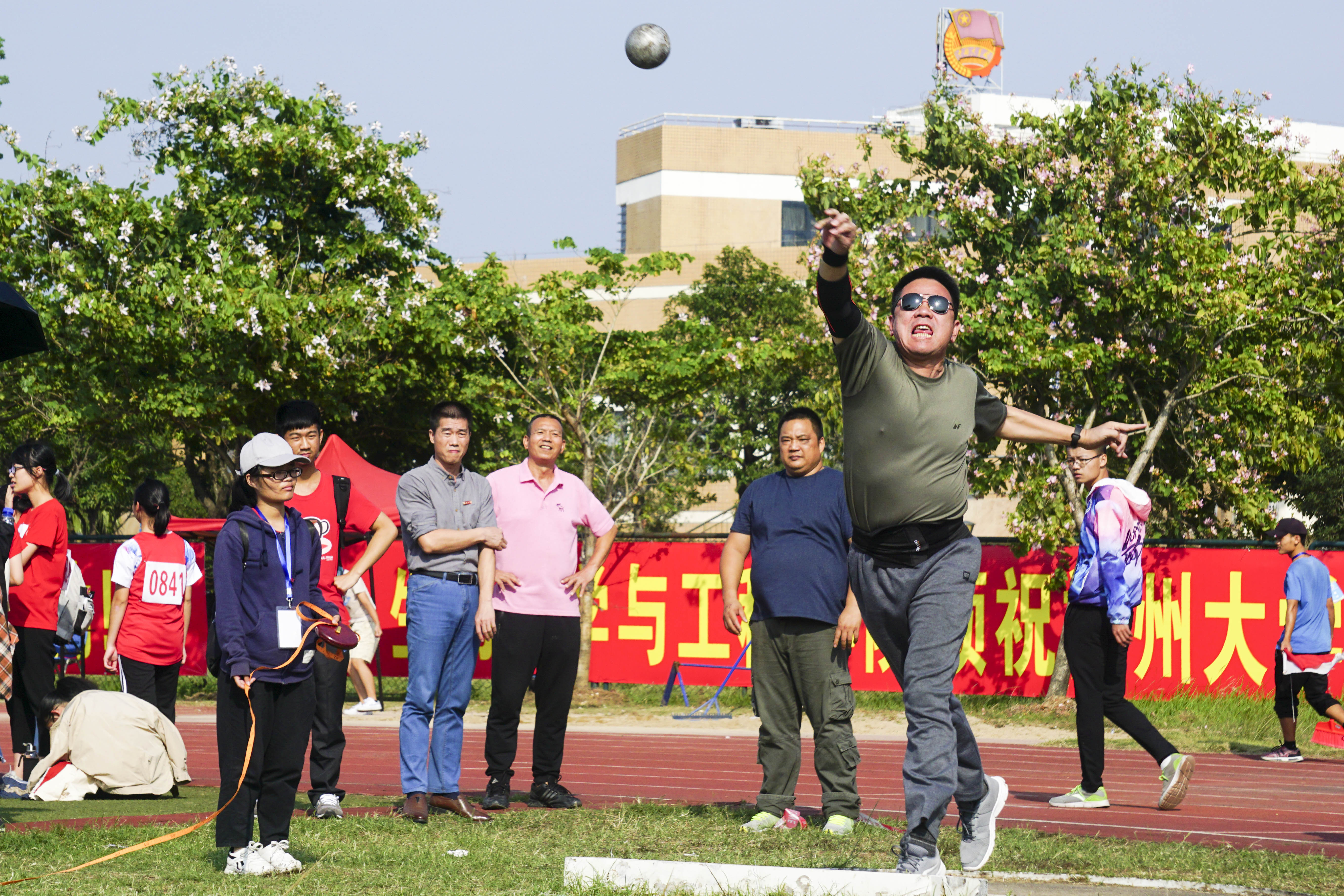 11月8日14时,男教中铅球比赛在一区田径场拉开序幕。共有9名教师参赛。